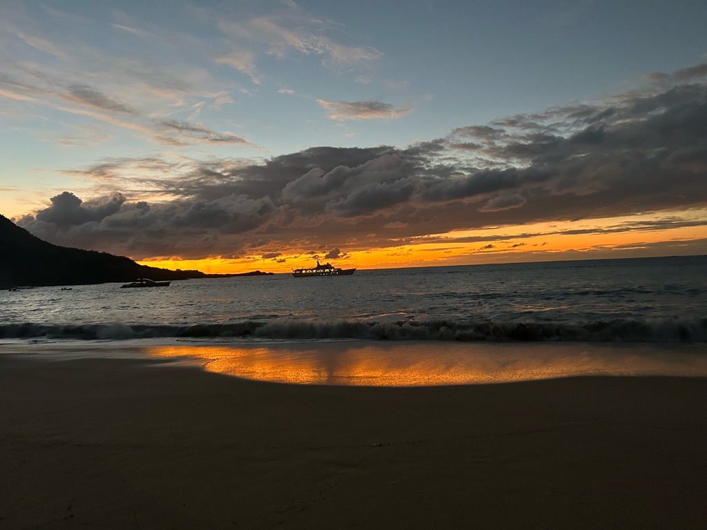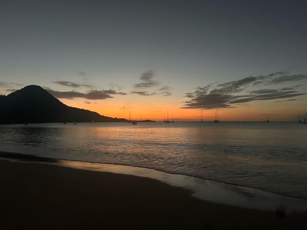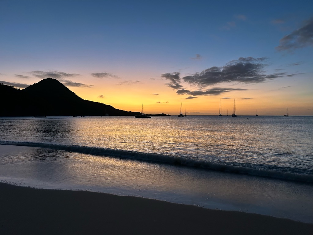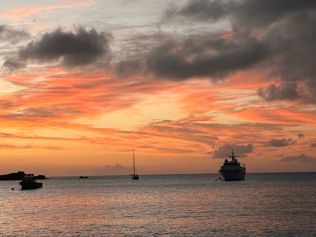 Our first sunset of the week. At this time of year it sets over the hillside to the left. Last year it was further right over the water.