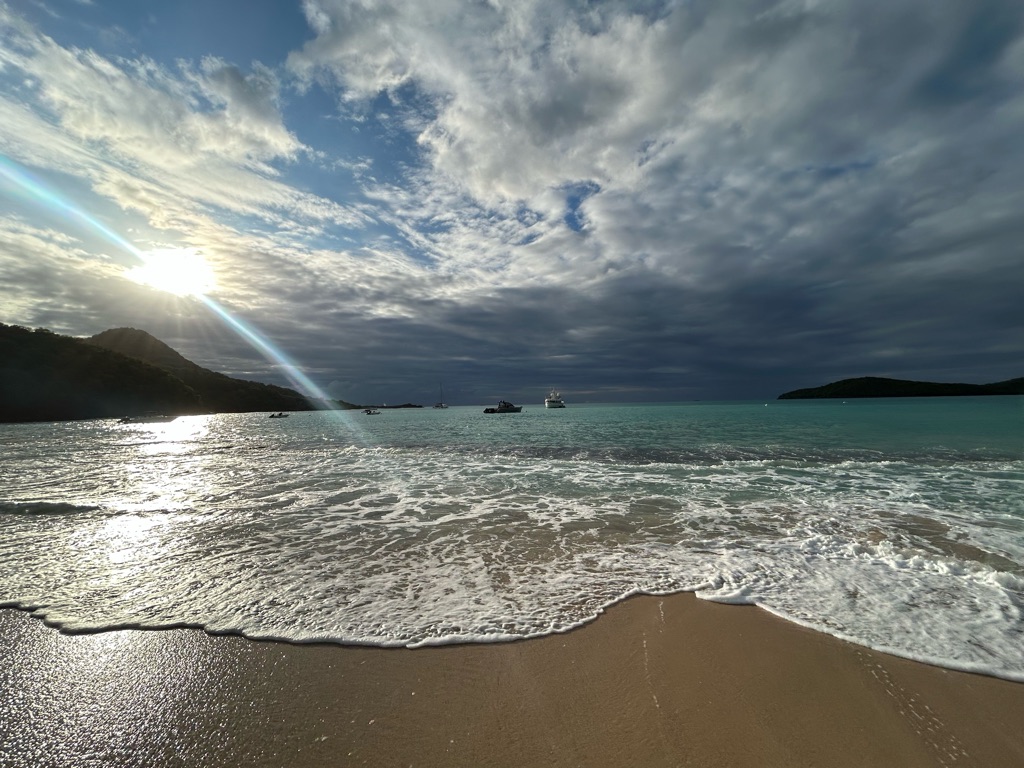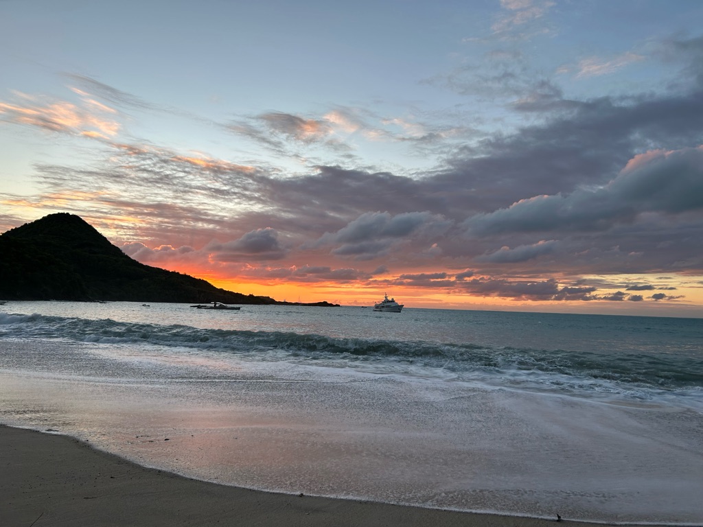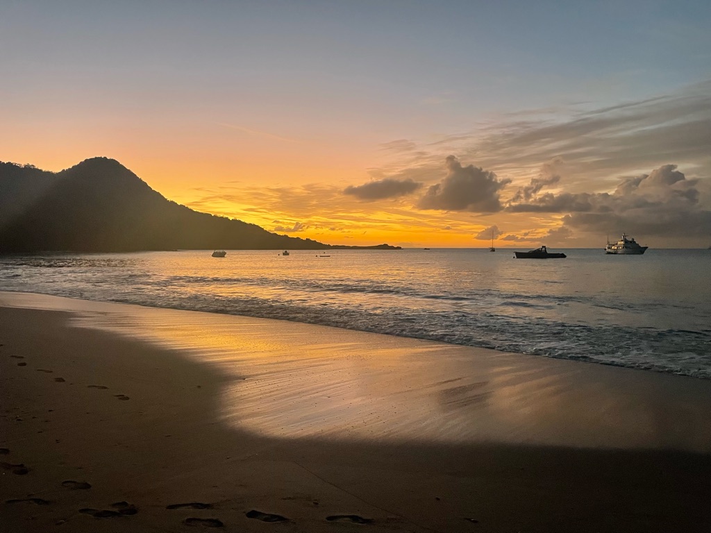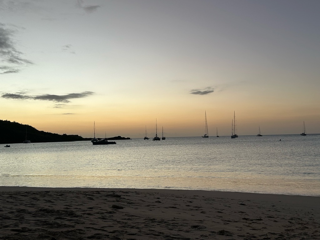 Our first sunset of the week. At this time of year it sets over the hillside to the left. Last year it was further right over the water.
