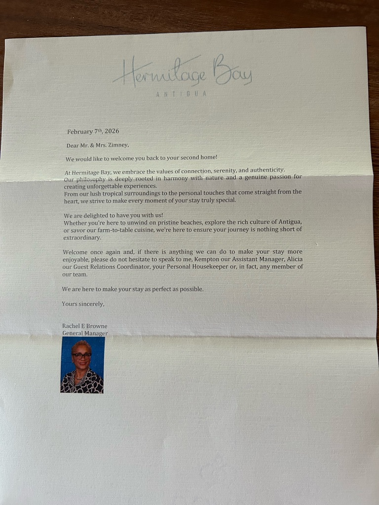 Our welcome back letter! There are so many if not all of the same staff as last year- really does feel like being home again!