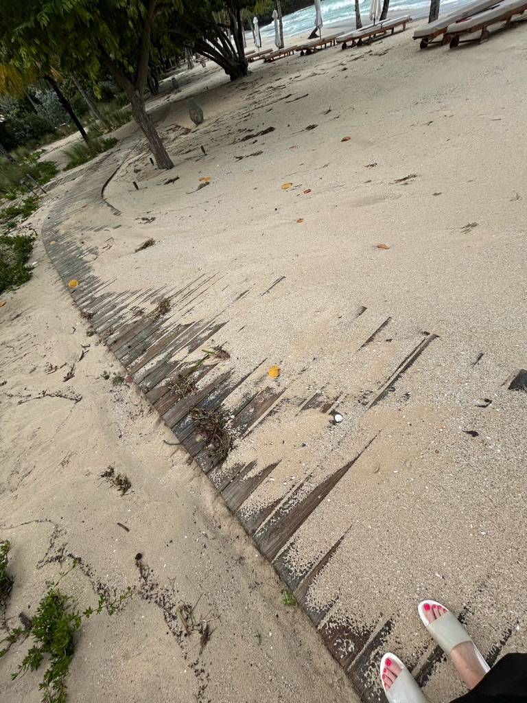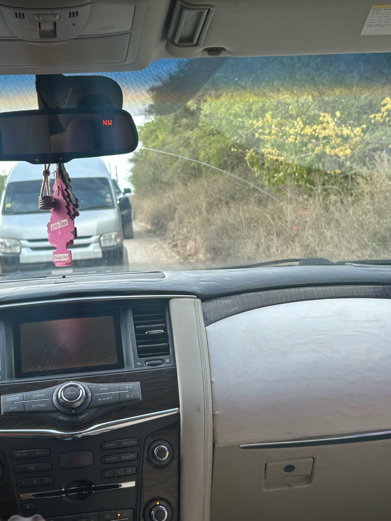 Any time we gained is now lost….upside, they are paving the last mile or so of the road leading to the resort (much needed!) so we were almost there, but had to reverse to let other cars through because….this is what the other side of the road looks like….