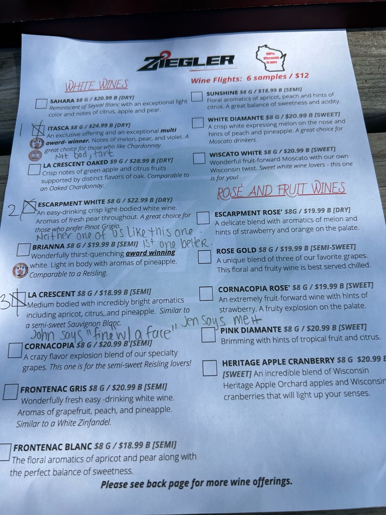 While fishing on Lake Winnebago w Pat one time- John said there was a cheese shop and winery that we should check out. So that brings us to today!