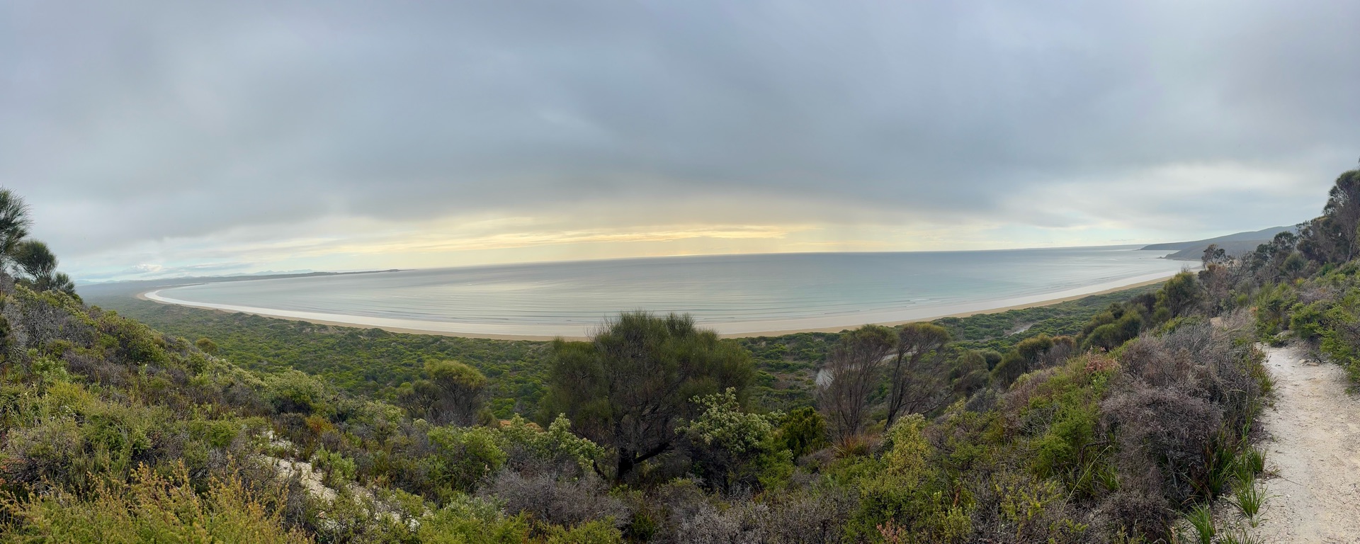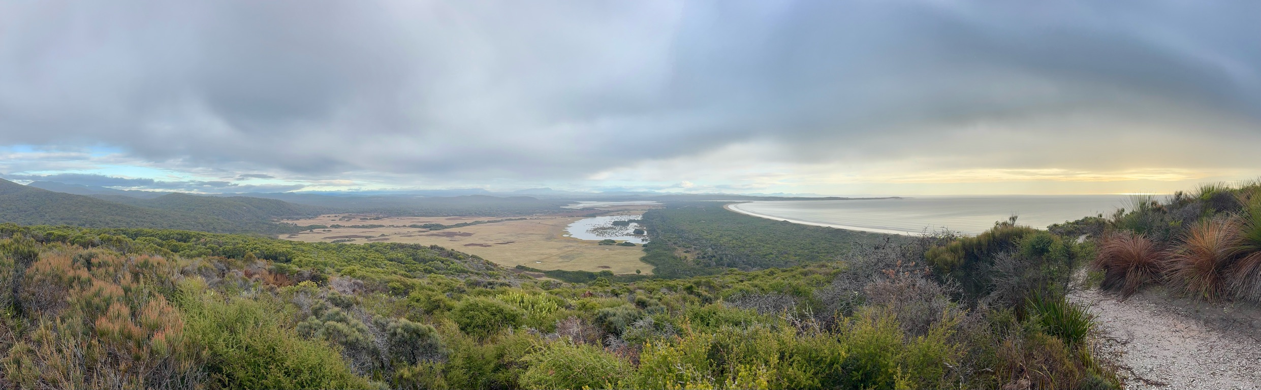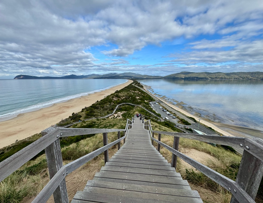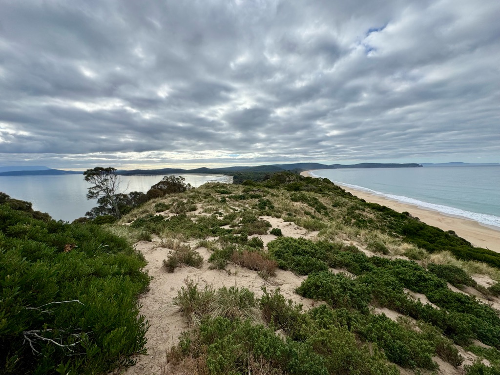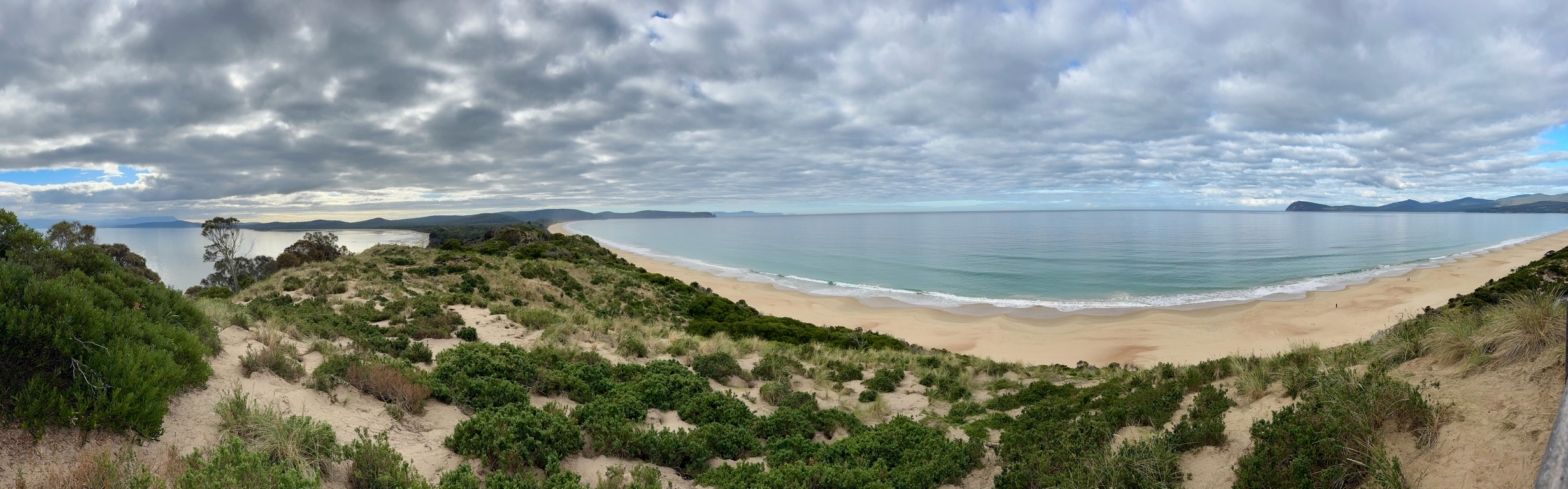 We spent a lovely day on Bruny Island. It is an interesting shape with a long spit connecting the north and south with an overlook on a tall sand dune in the middle of the spit.