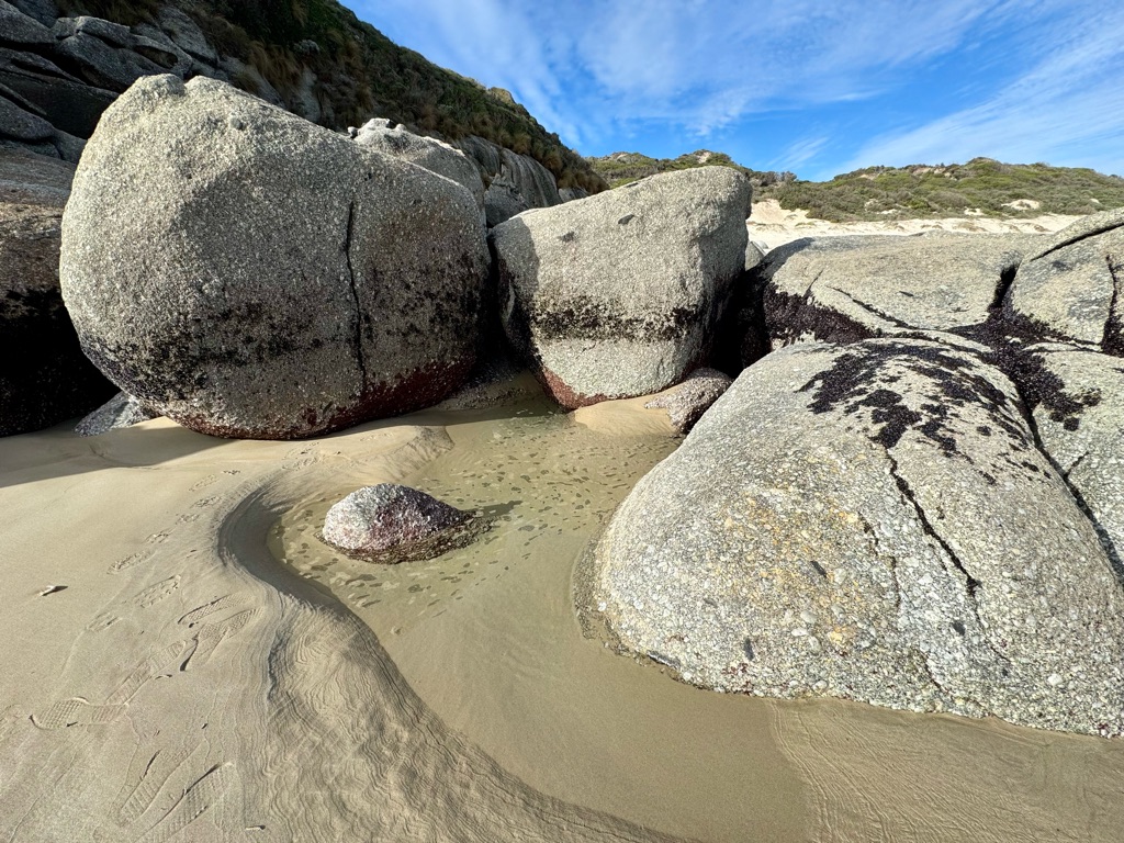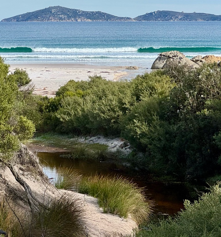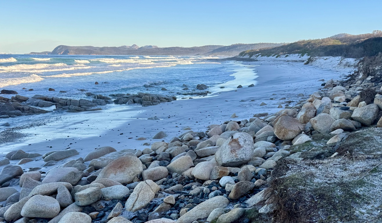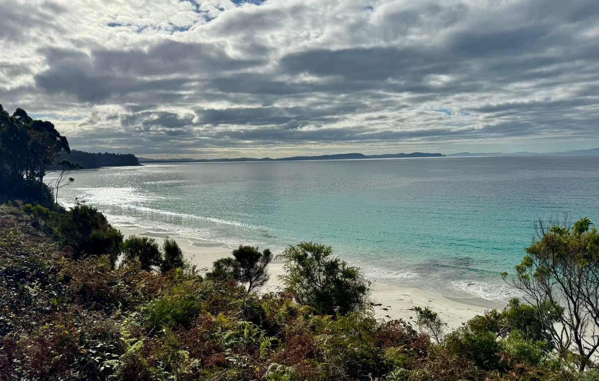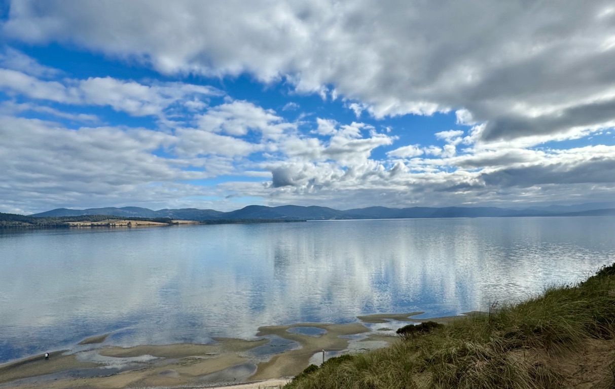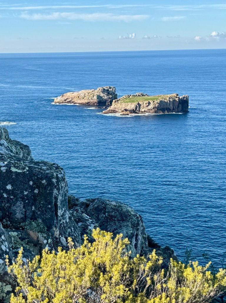 We spent a lovely day on Bruny Island. It is an interesting shape with a long spit connecting the north and south with an overlook on a tall sand dune in the middle of the spit.