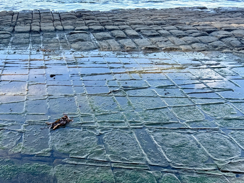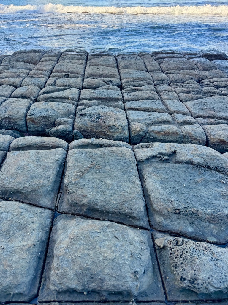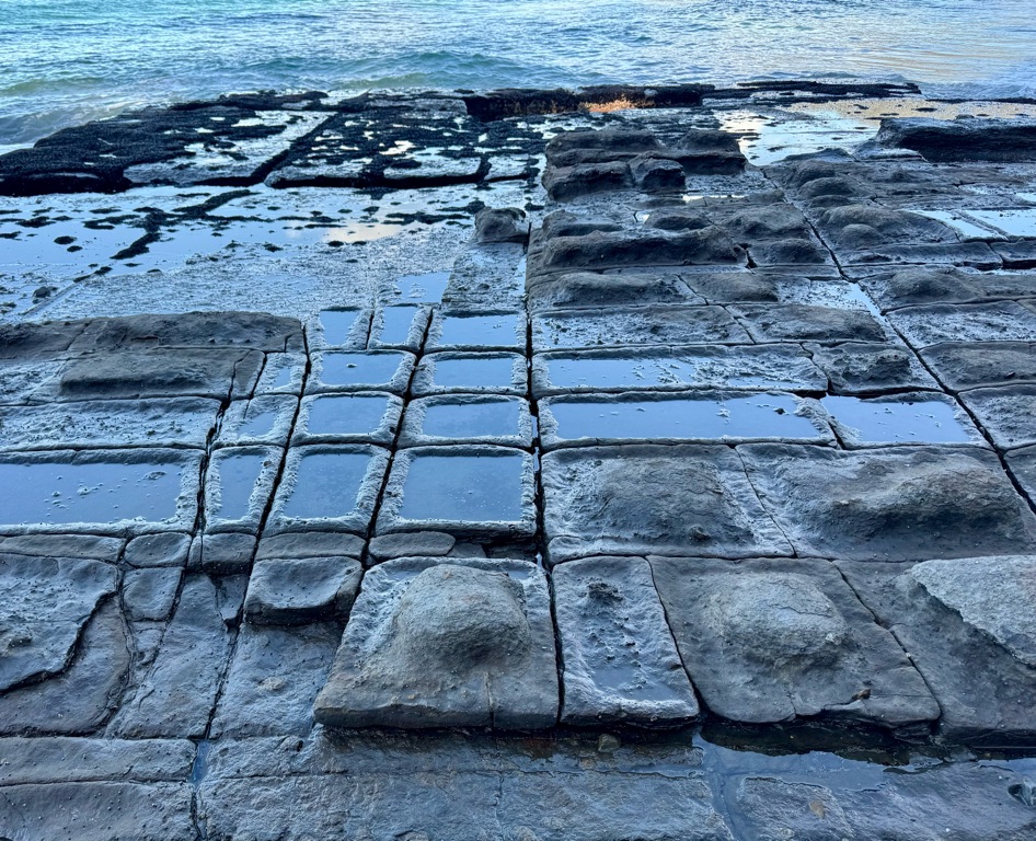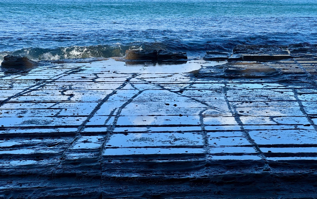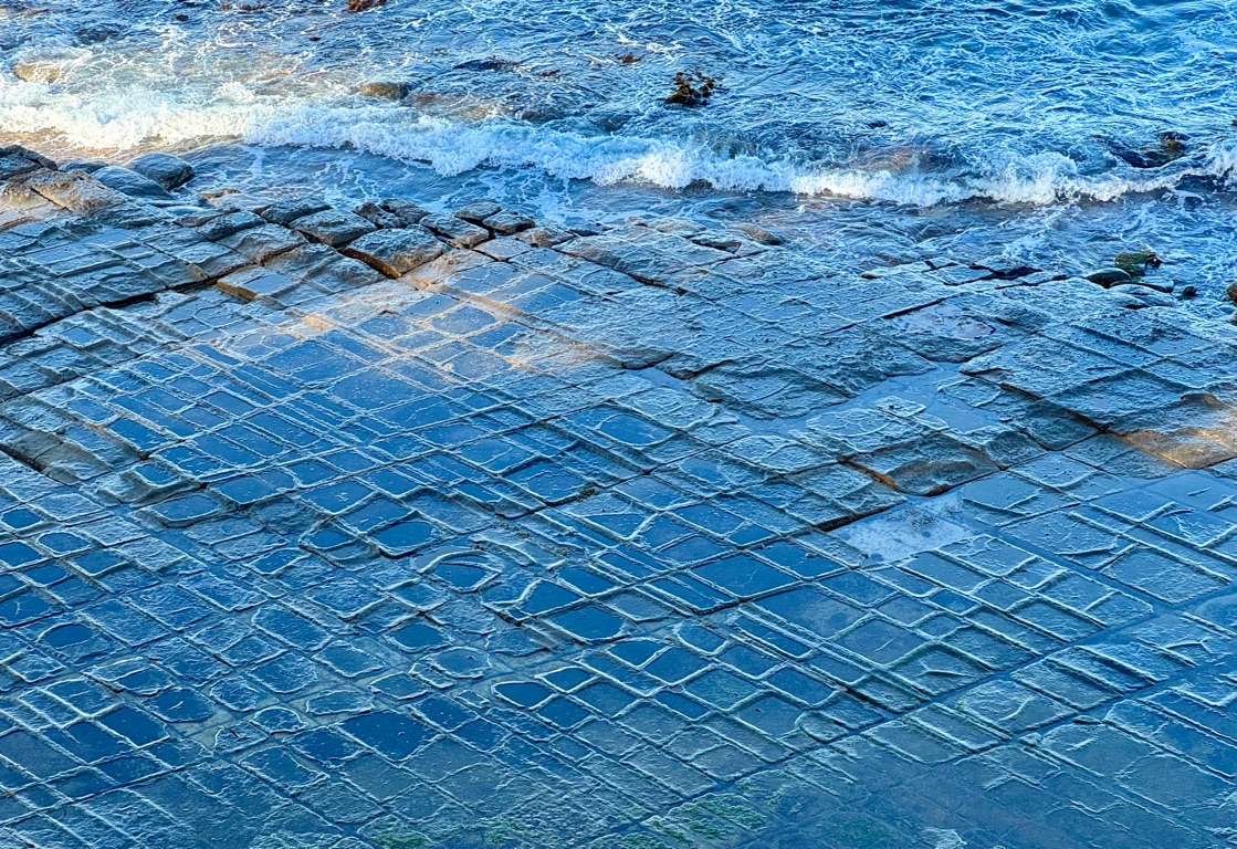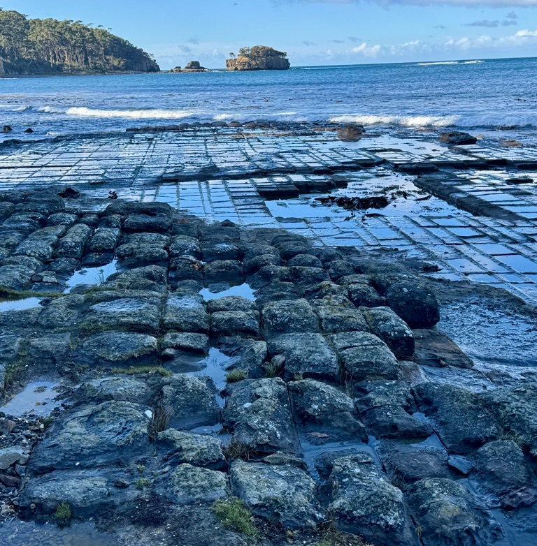 Looking down on a section of an area called the Tesselated Rocks They are a unique geological formation resulting in the rocks forming what looks like tiles.