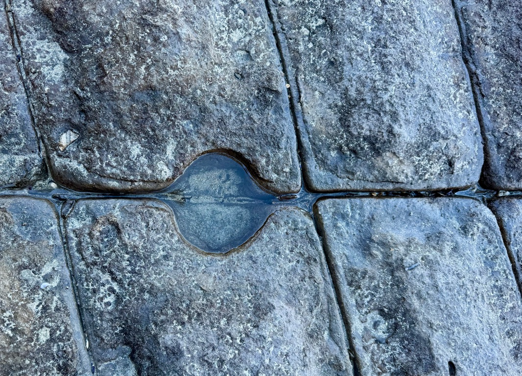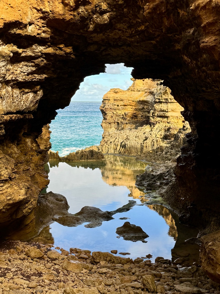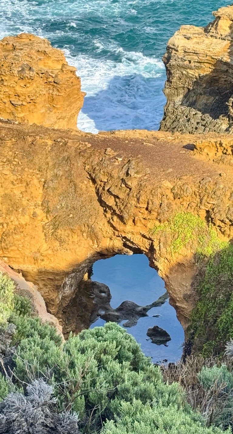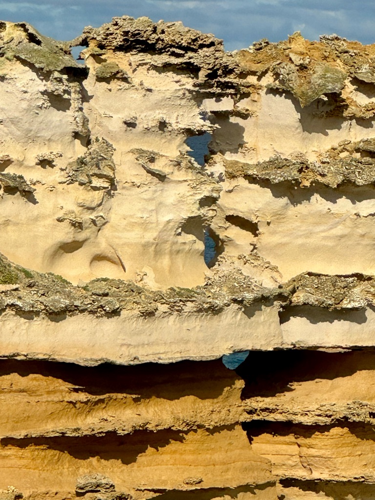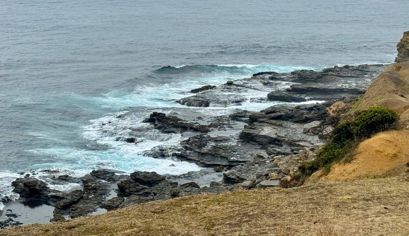Looking down on a section of an area called the Tesselated Rocks They are a unique geological formation resulting in the rocks forming what looks like tiles.