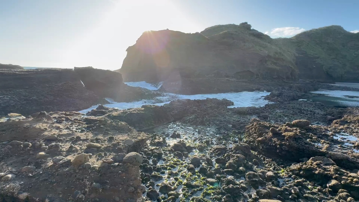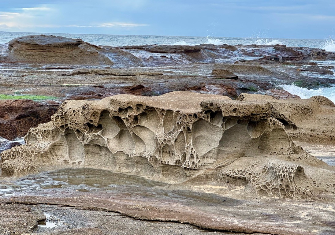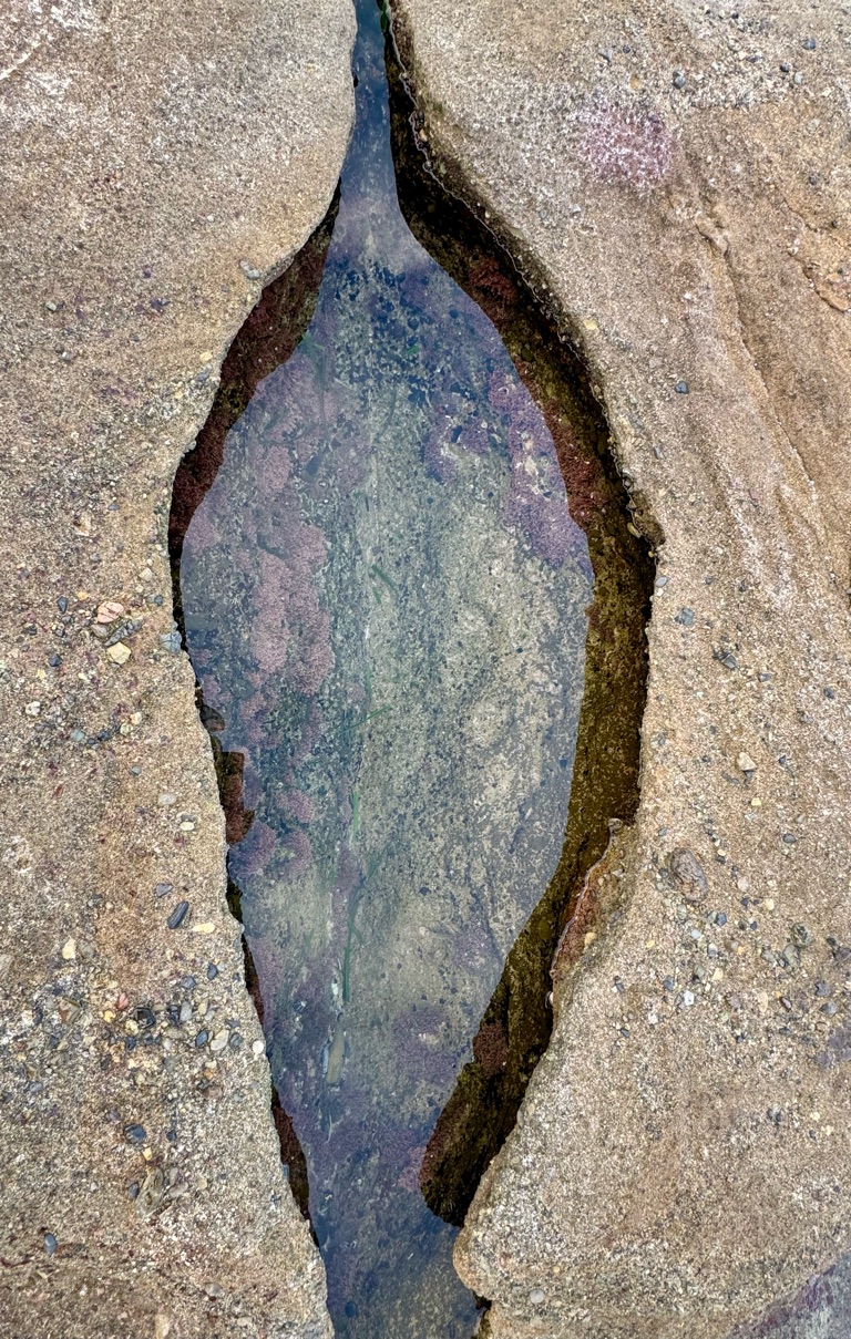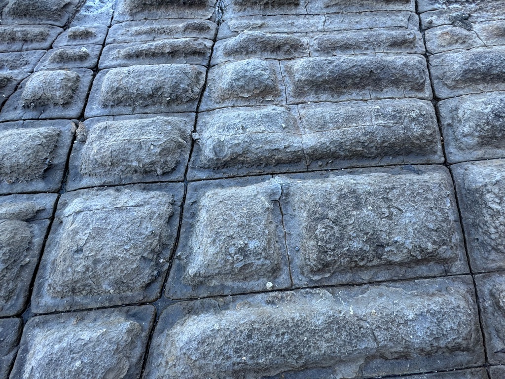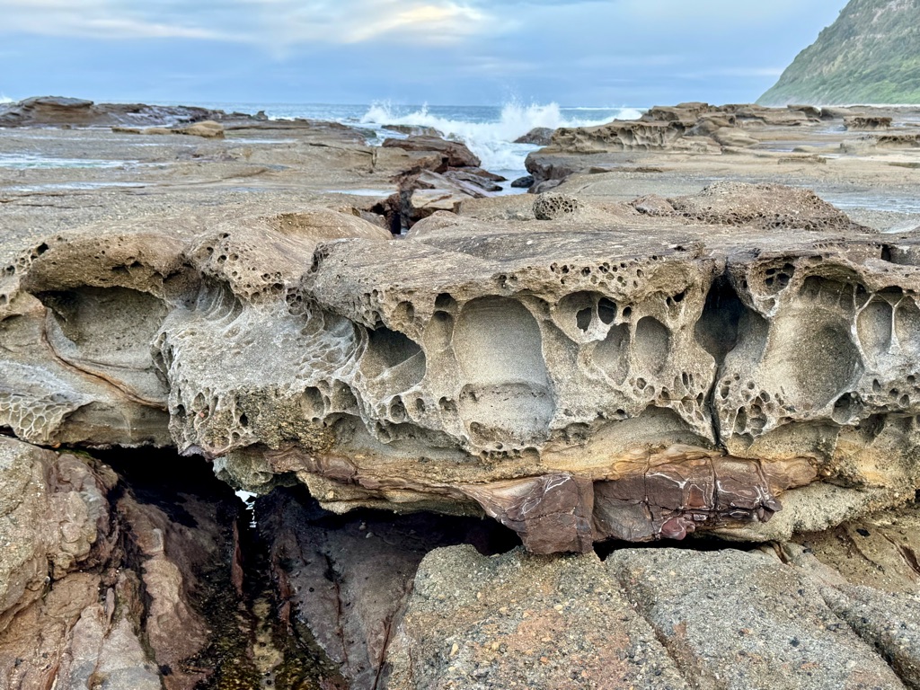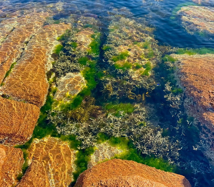 Looking down on a section of an area called the Tesselated Rocks They are a unique geological formation resulting in the rocks forming what looks like tiles.