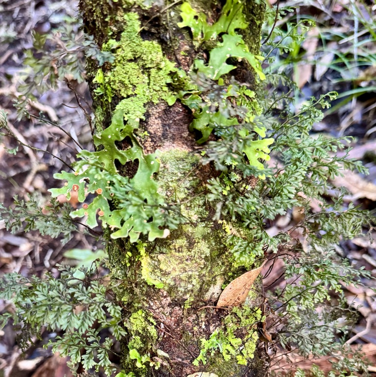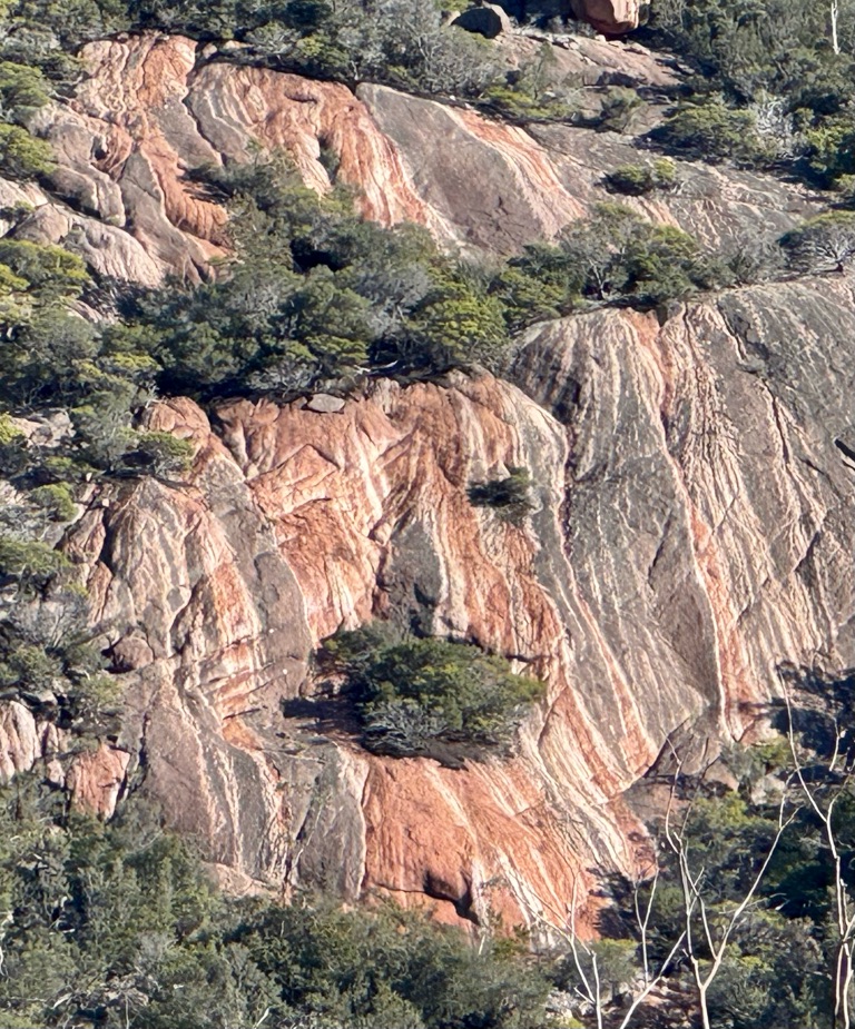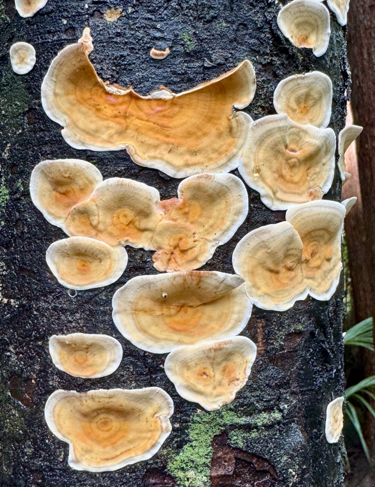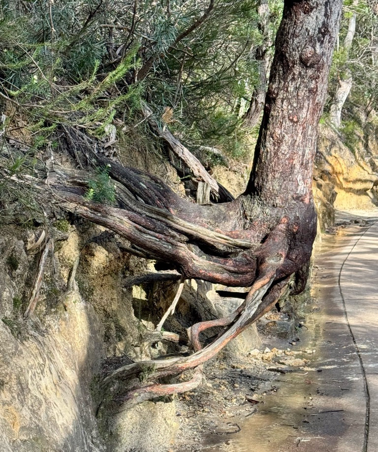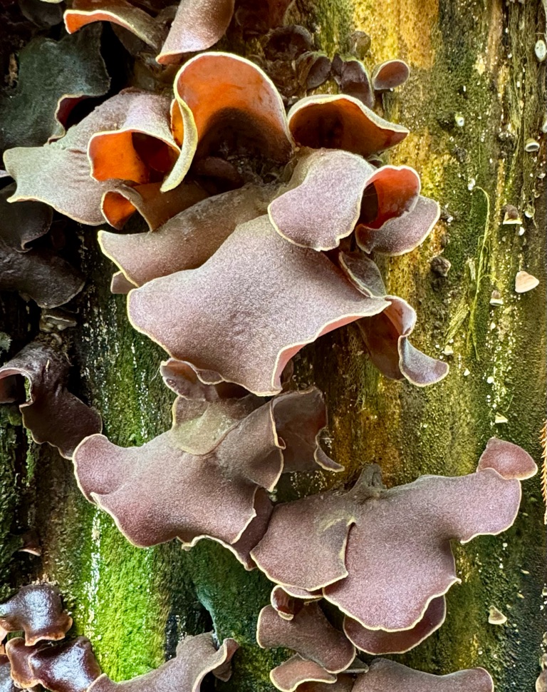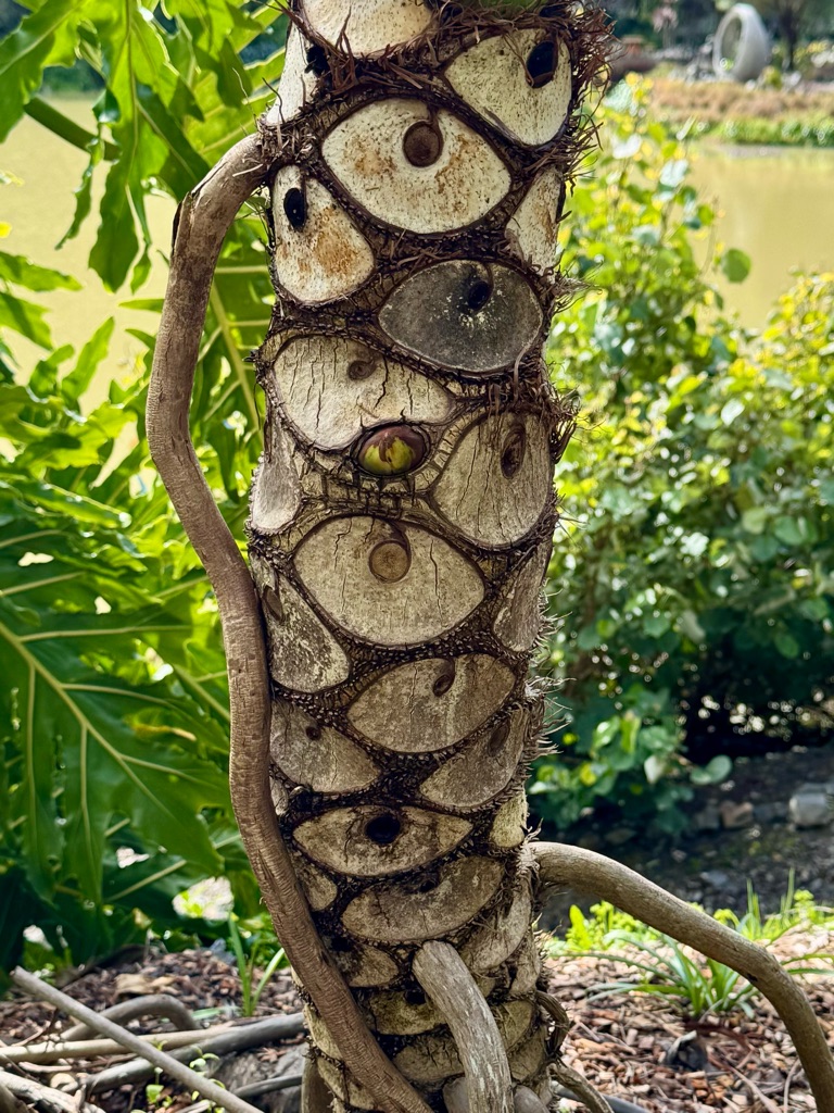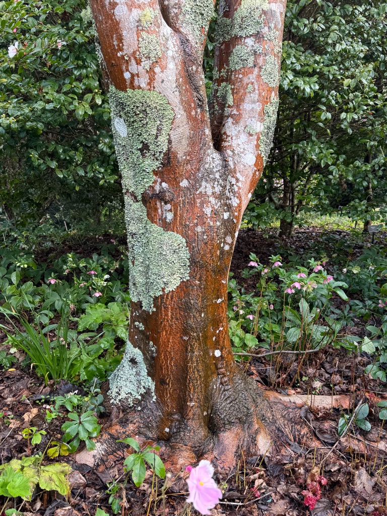 This is a strangler fig that climbs down or up a host tree and eventually surrounds and kills it. The original tree is the darker bark. It’s a plant eat plant world!