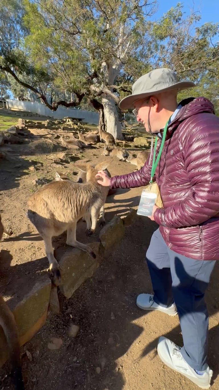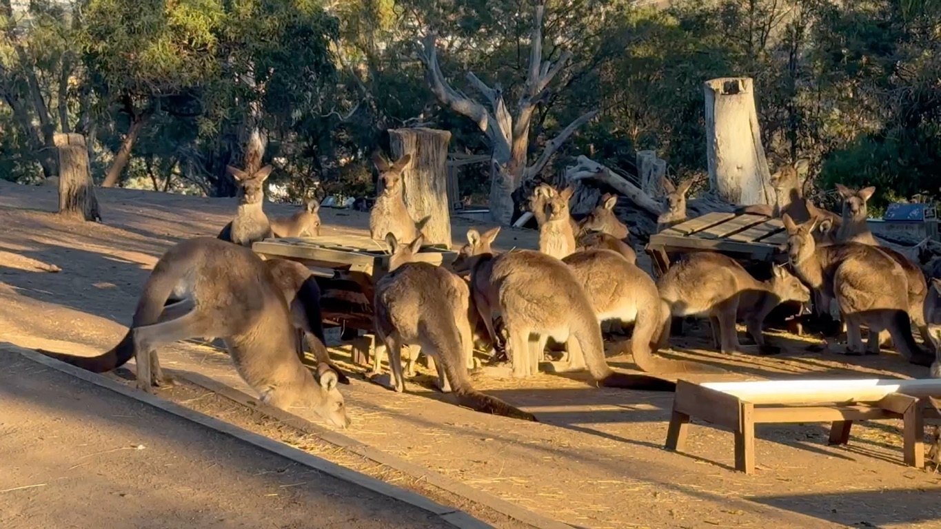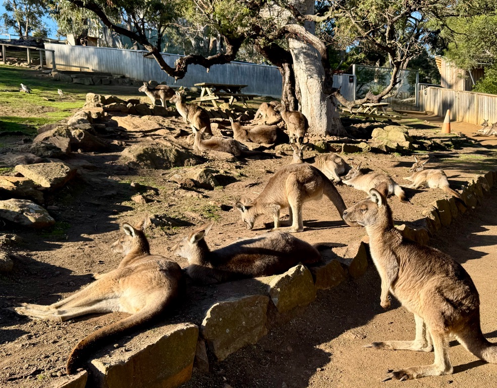 The Kangaroos are free range. Visitors get a bag of food and can feed them by hand if they’re interested.They also liked to be scratched. Don’t attempt this with Kangaroos in the wild!