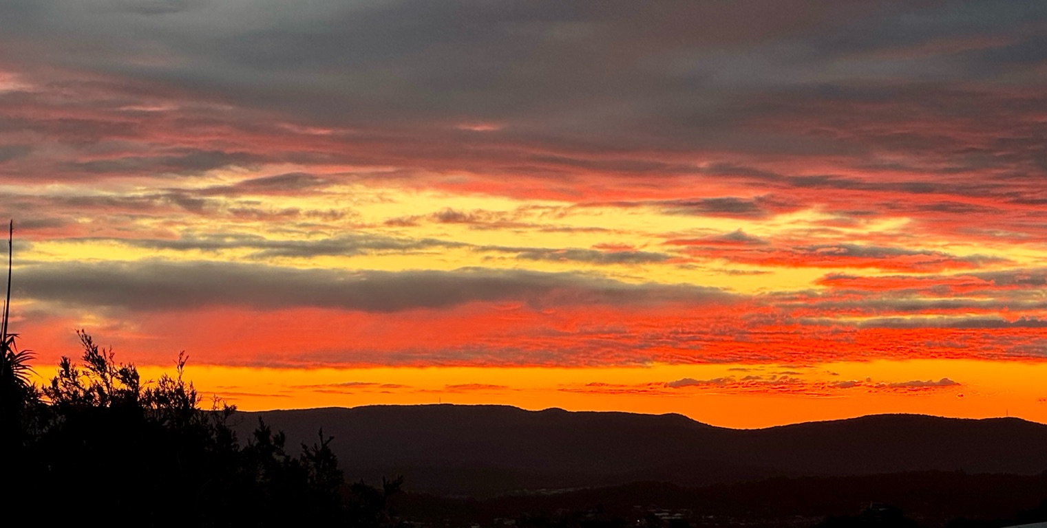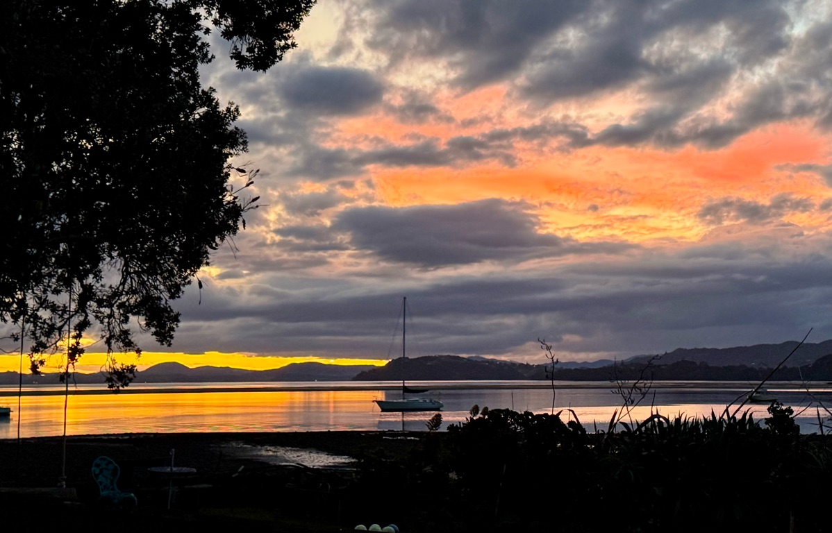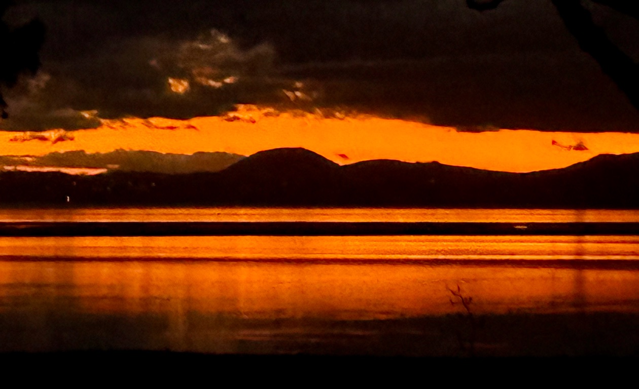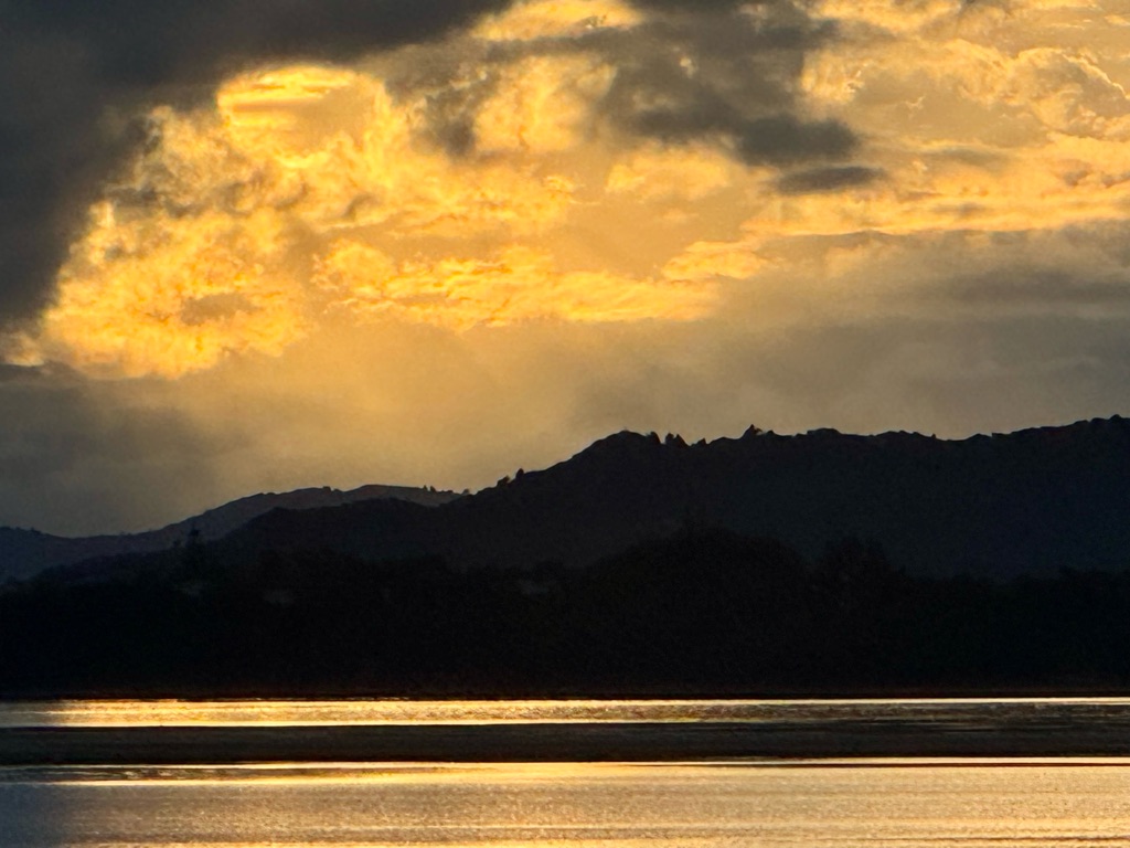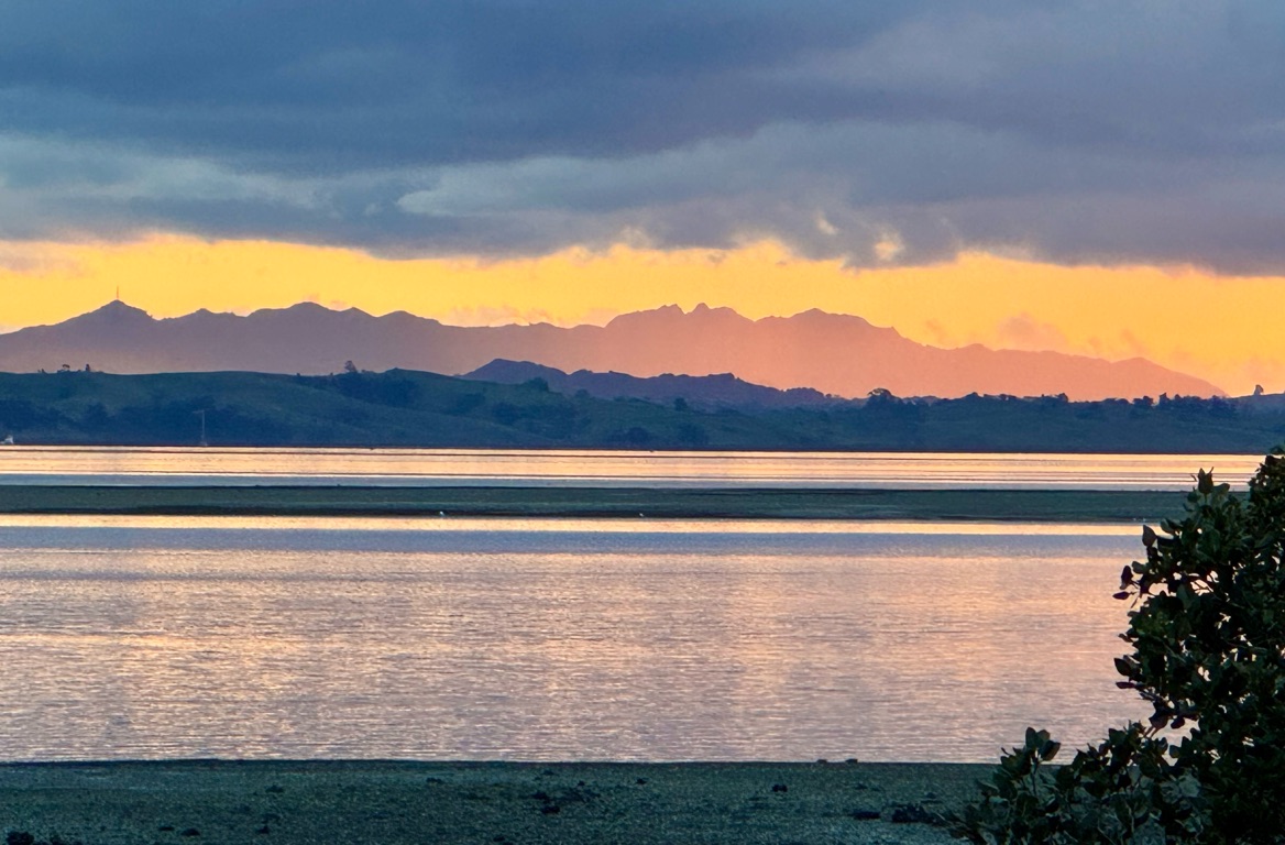 Evening view from our Airbnb looking across to Hobart and Mt. Wellington.
