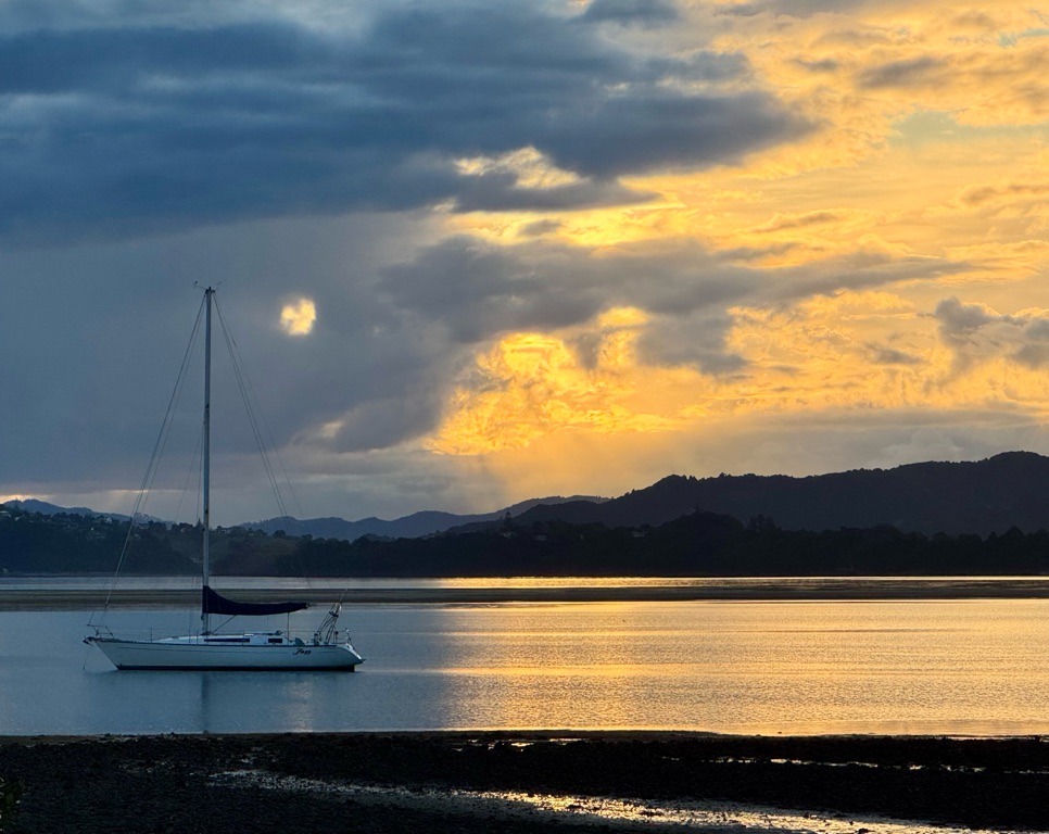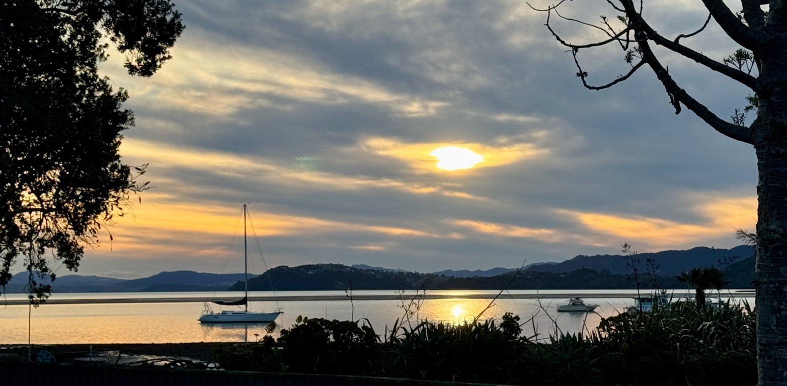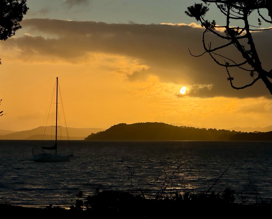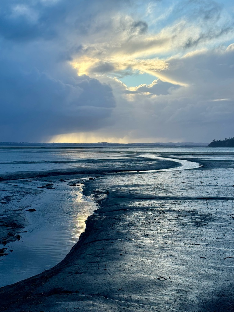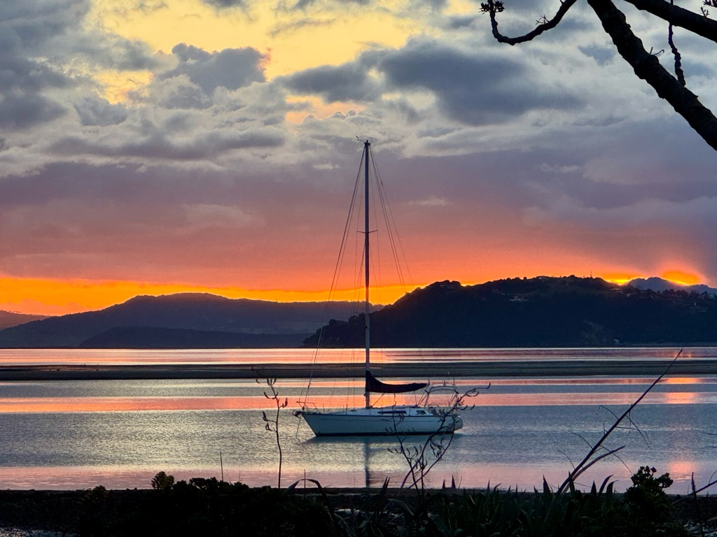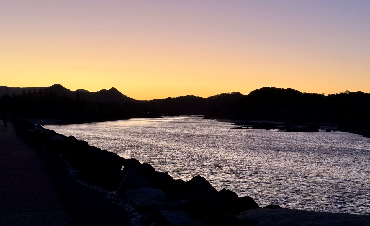 Evening view from our Airbnb looking across to Hobart and Mt. Wellington.