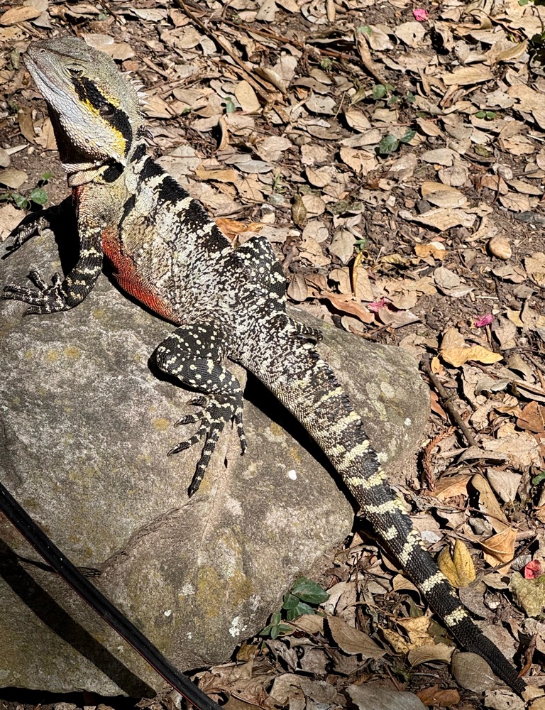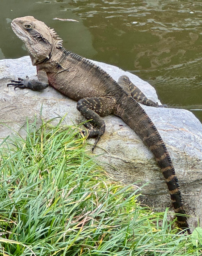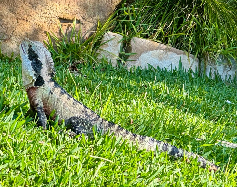 Our first wildlife- an Australian Water Dragon hanging out along the beach path.