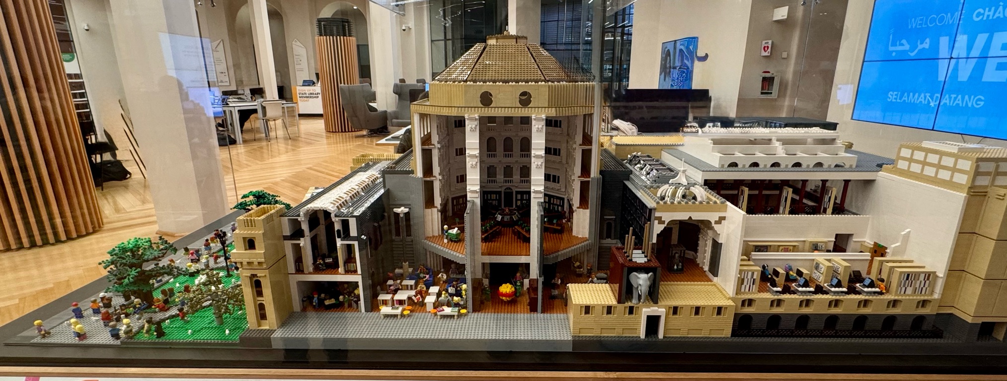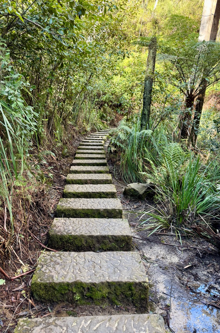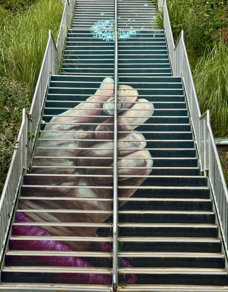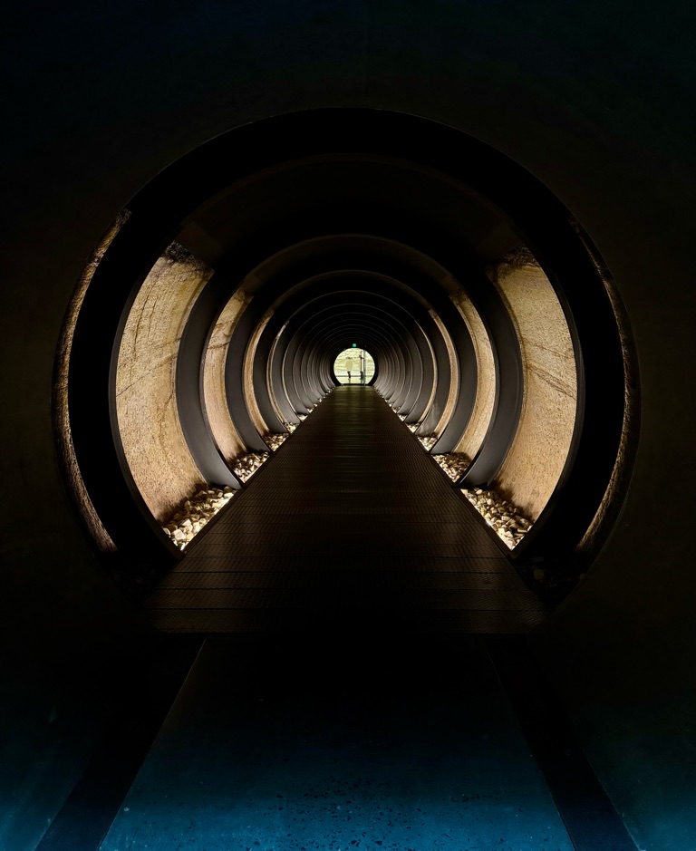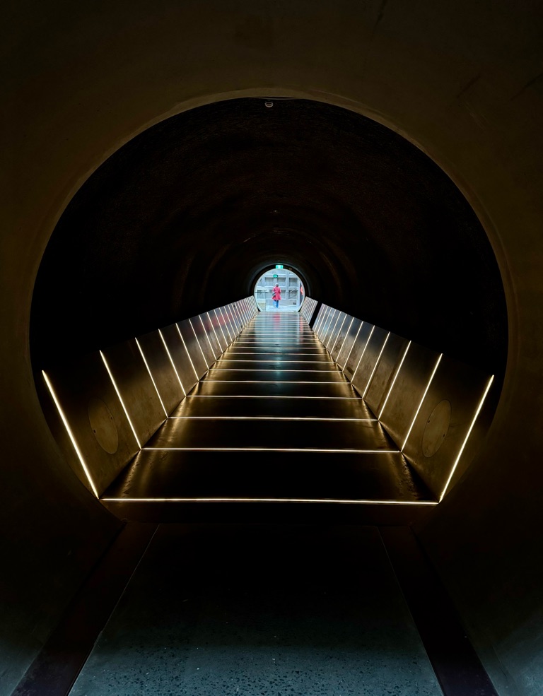 View from the ferry (which has tiger benches) to the museum starting point through a tunnel or up 99 steps.
