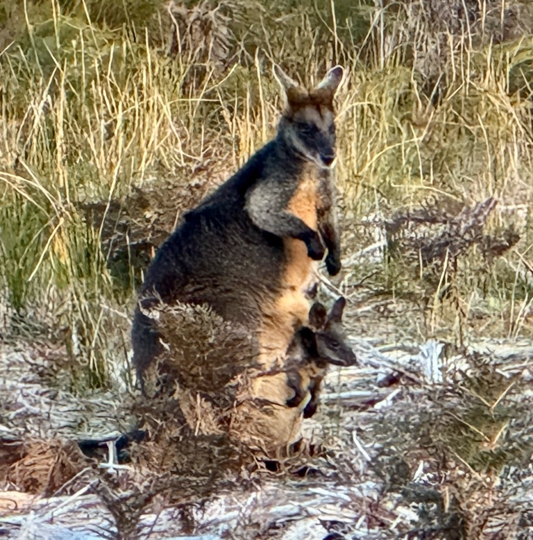Today we took a ferry to Maria Island which is a national park. It doesn’t have any cars. Visitors can walk or bike. There is camping and folks can also stay in old prisoner barracks. It’s a haven for wildlife.