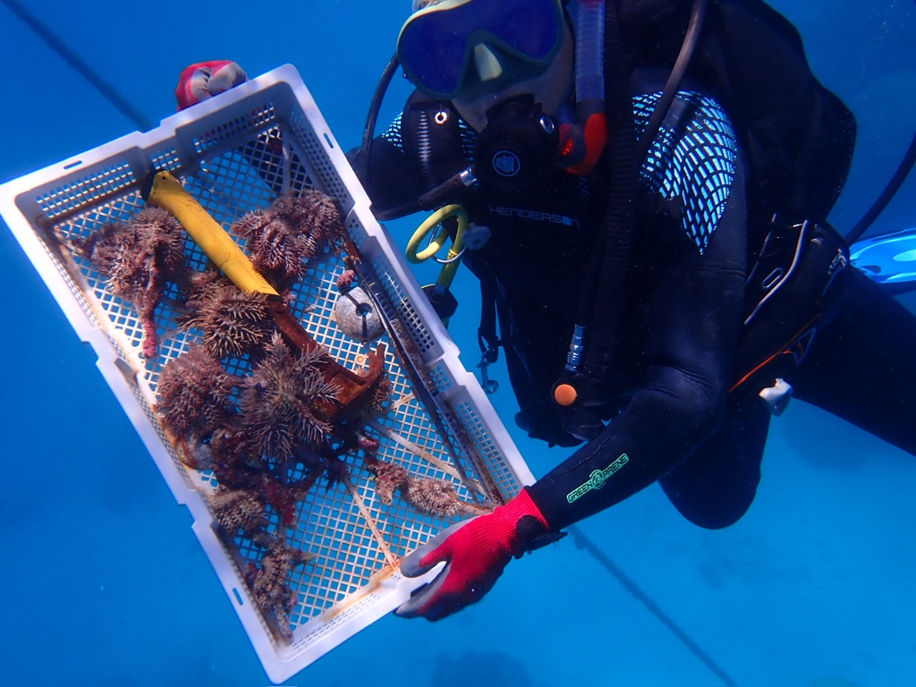 The company we went with does coral restoration. This is one of their team members working during our trip.