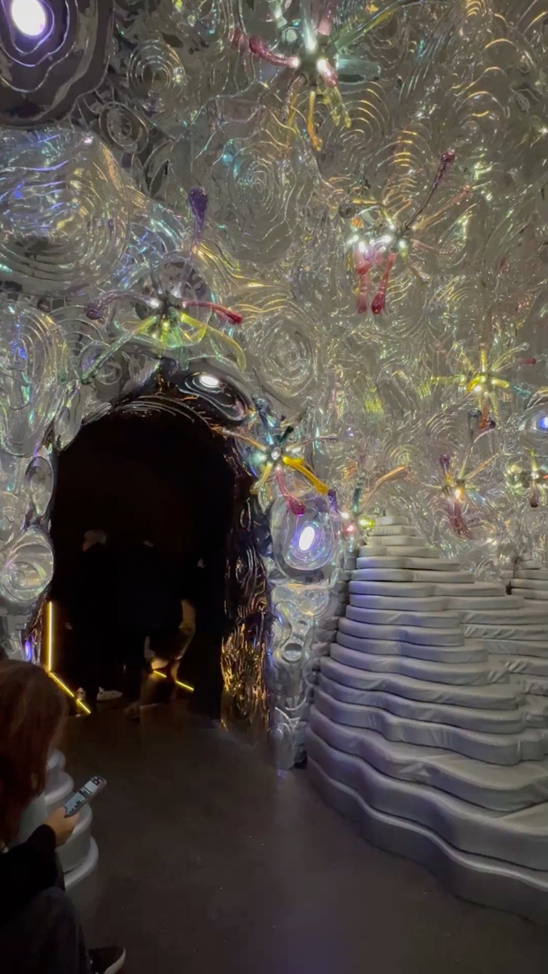 A video of the inside a room of what feels to me like the inside of an oyster. Super similar to a Meow Wolf space.