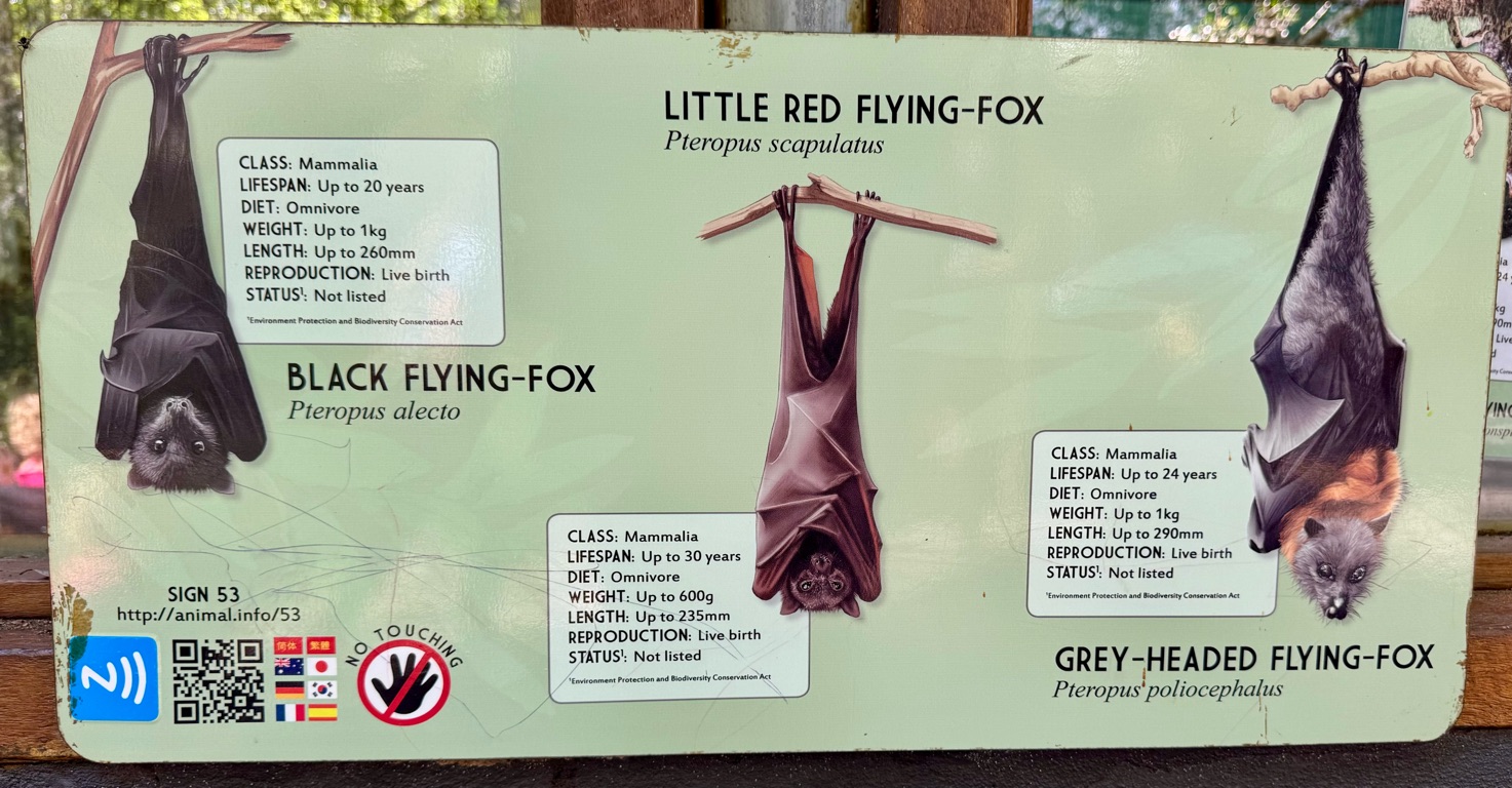 First, the sanctuary hosts a lot of other animals besides Koalas. The flying foxes, aka bats, are super important to Koalas as they pollinate and disperse eucalyptus trees and their seeds. Koalas only eat eucalyptus so ultimately they rely on bats for their food.