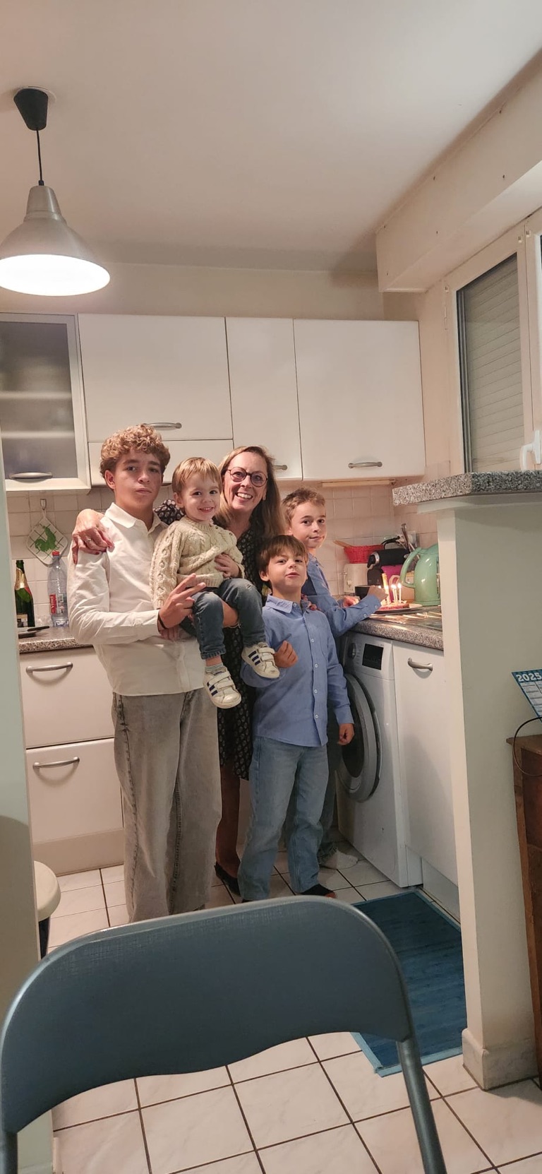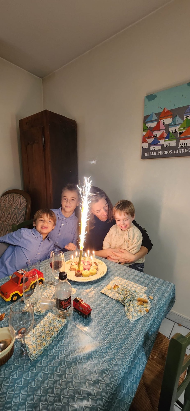 Apéro dîner hier soir en famille : anniversaire d Amelie et St Michel . Bons moments capillaires 🪮avec nos Théo et Arthur, notre Matthieu s est nourri de comte 🧀et notre Lucas a encore grandi 🥹. Merci à tous 🙏
