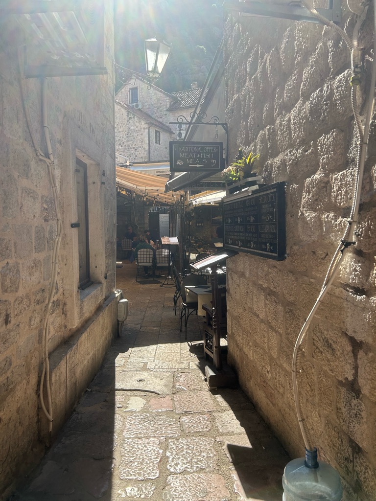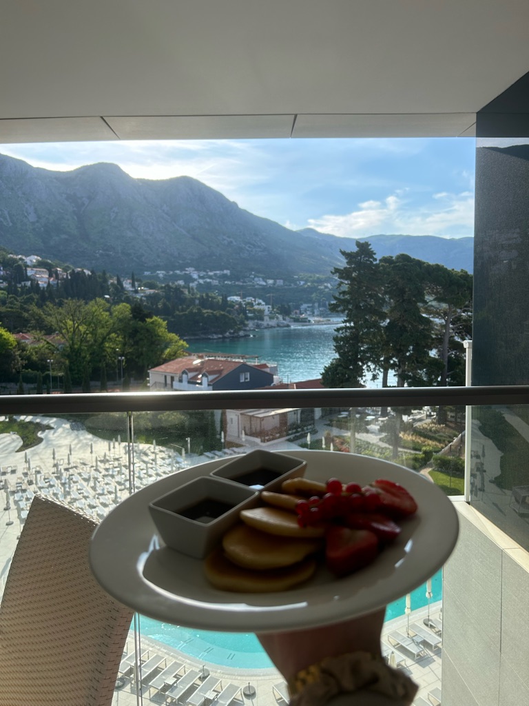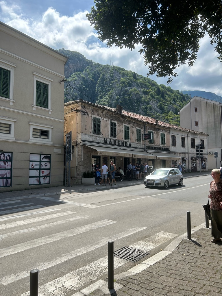 Mateo, our driver, picked us up at 7am. 1:30 drive to Kotor, Montenegro. Walked the Old Town for 30 mins. Mom bought an orange purse and bracelet then we walked to Little Bay for breakfast. Michaela had “French toast” which was white bread with cut veggies sandwiched inside and some cheese topping; it was amazing. The eggs made dad sick. Mom bought cherries (not from the smoking lady). Drove 5 hours to Vlore. Stopped in Montenegro for overlook view of Stari Grad. Boarder control at Albania didn’t stamp our passports. Arrived to Maritim Marina Bay Resort. 2 bedroom suite with balcony. Dinner at rooftop Lime restaurant. Dad unimpressed with bourbon selection. Woodford Reserve then they ran out and only had Bulliet.