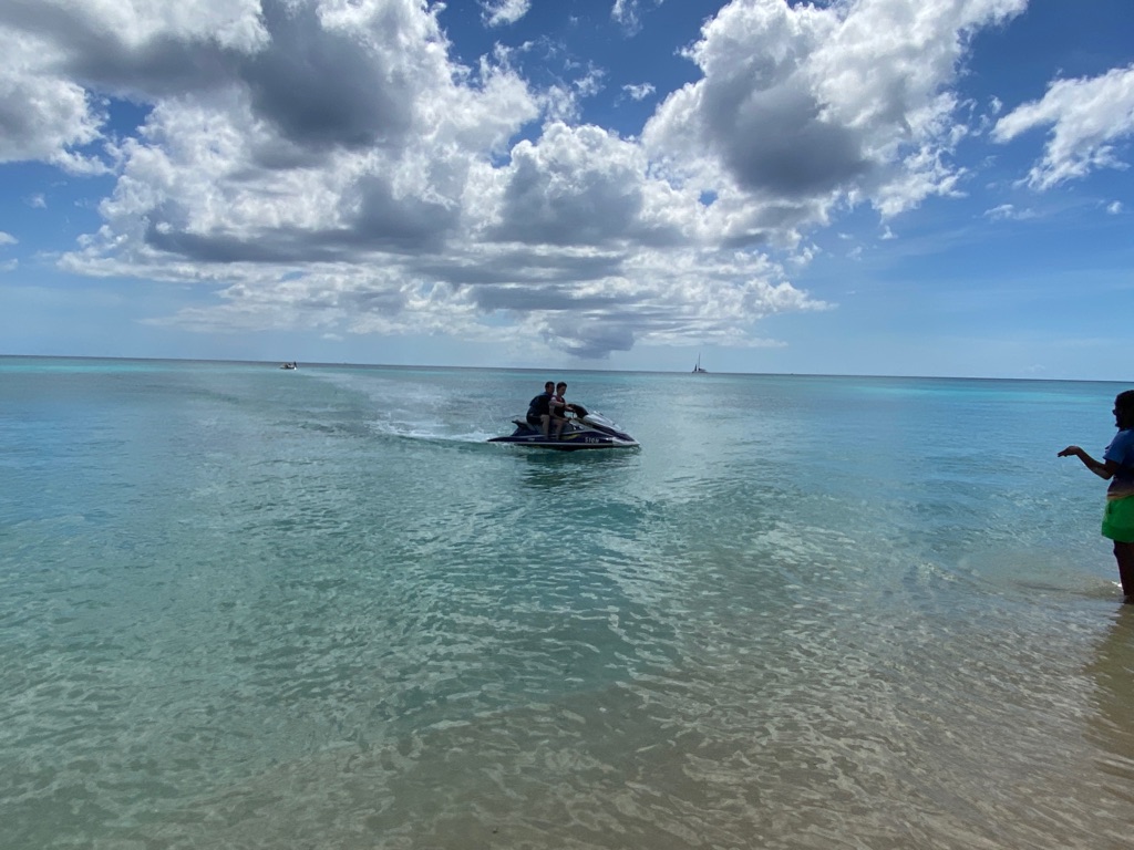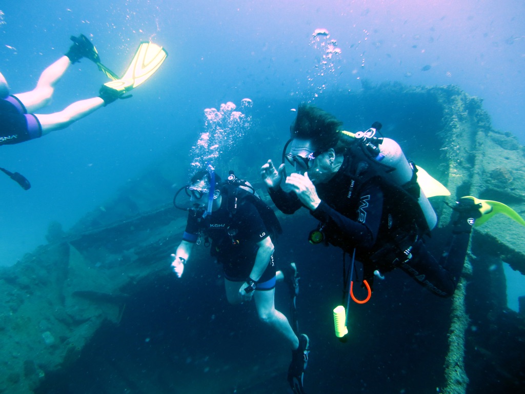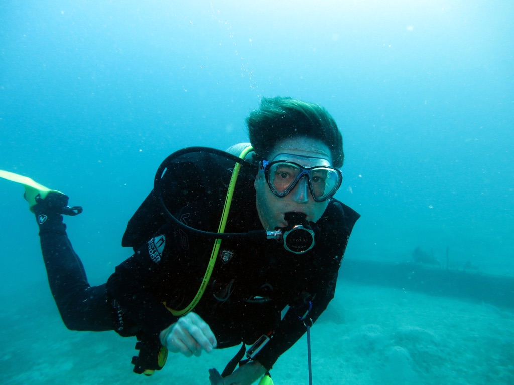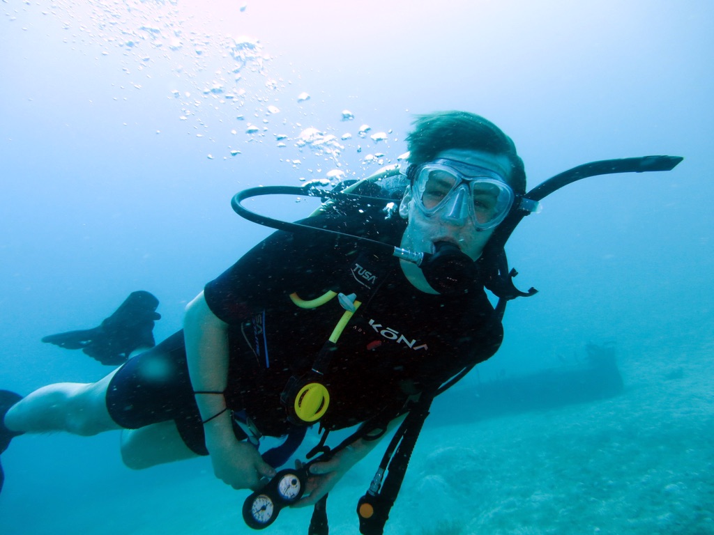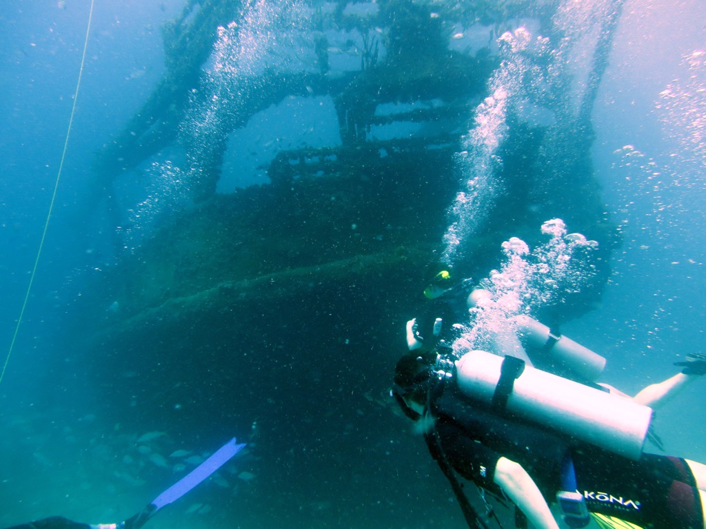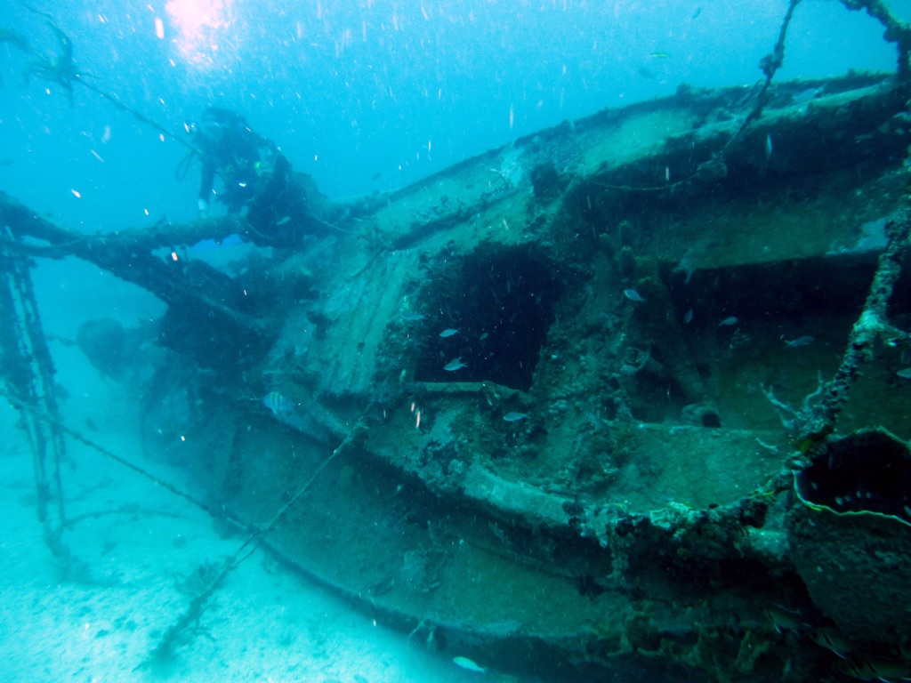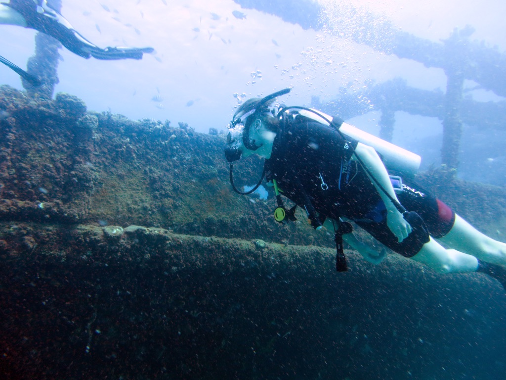 Backrolled into Carlisle Bay, where we explored five wrecks while Tash and Chloe snorkeled above us.