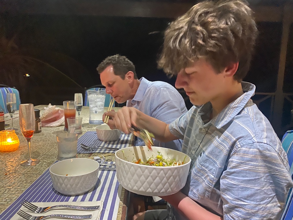 We brought in a chef to make us an Asian-themed pre-birthday dinner