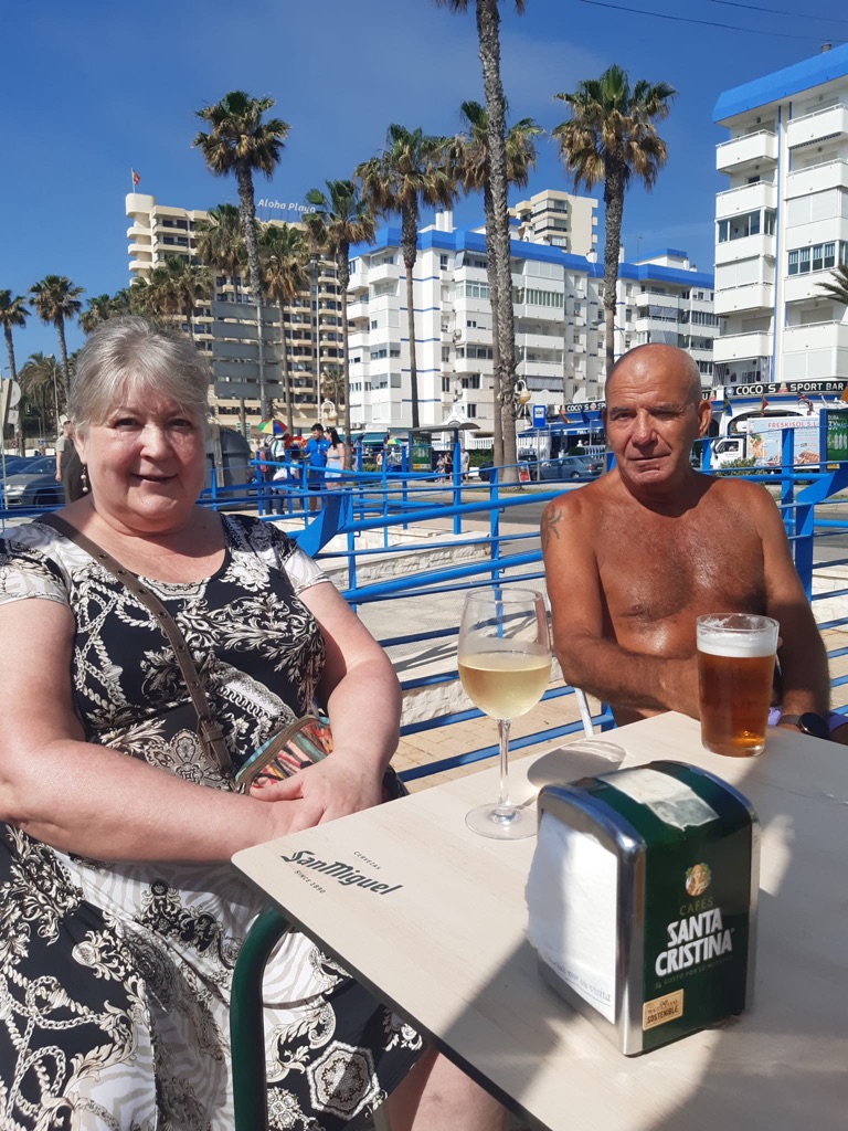 Malagan kentältä löytyi hyvin taksi ja osasin vieläpä espanjaksi ilmoittaa minne halusin, no osoite piti kyllä näyttää puhelimesta, kun enhän mä sellaisia muista. Vartin matka ja se sujui joutuin, kun tuli viesti, että sangria täällä odottaa.