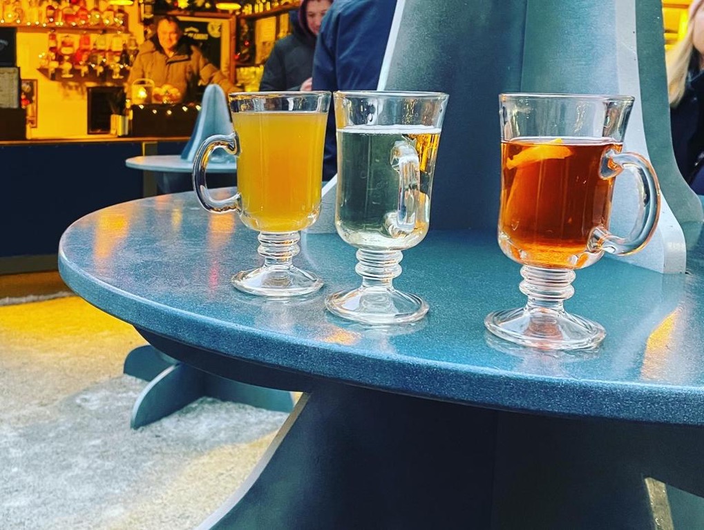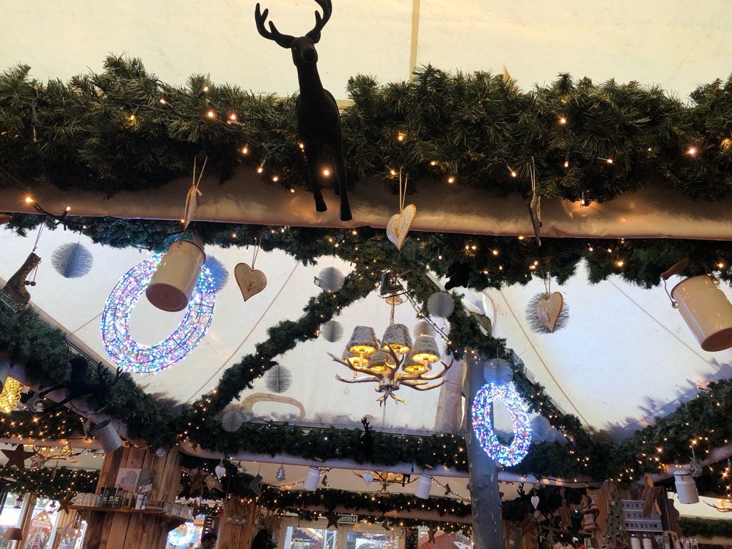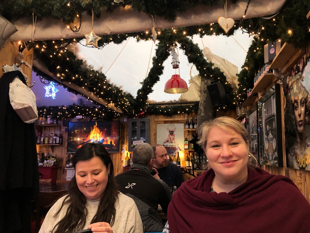 Löydettiin joulutori ja sieltä mökki, rohkeasti sisään ja sieltä paljastui janoisen (ja olisi ollut nälkäisempi) taivas.