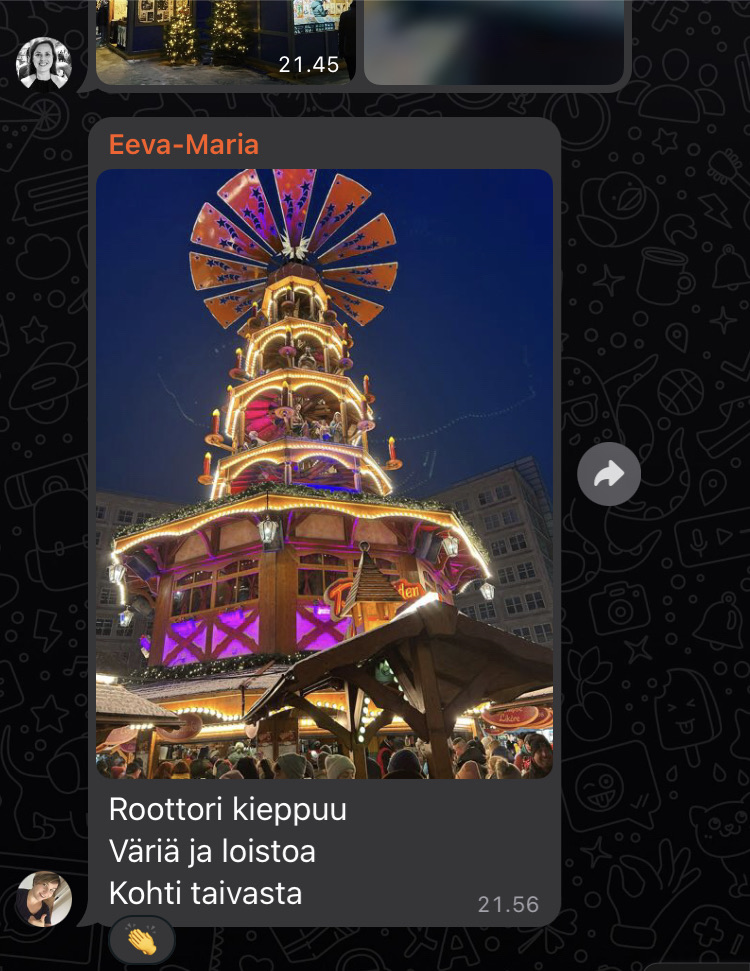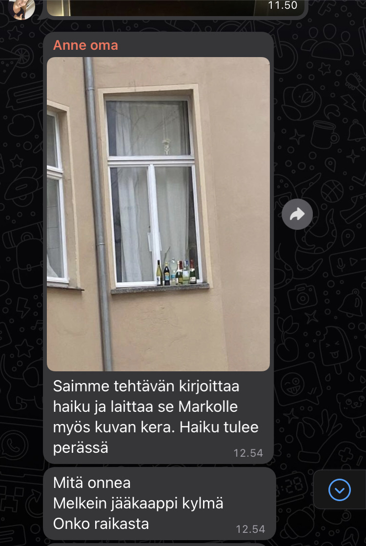 Mukaan tarttui vielä yhdet jälkkärit ja kaupasta pari pulloa viiniä.