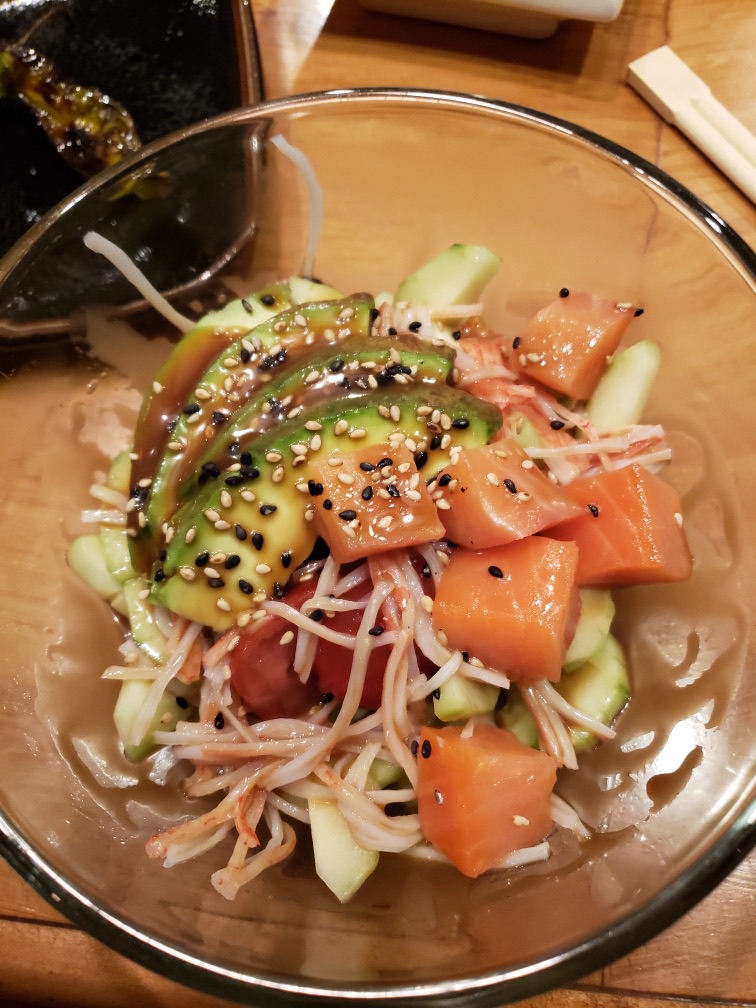 Cucumber salad with smoked salmon and crab. This was the bomb!