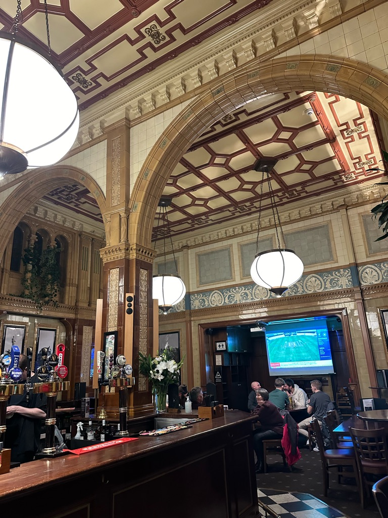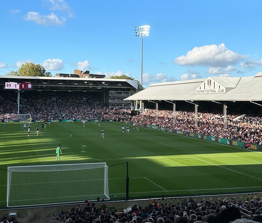 Saturday Part 2: The afternoon found us making our way to Fulham along the Thames just west of central London. We went to a Premier League football game at Craven Cottage, a stadium dating to the 1800s. Sadly, Fulham lost to Aston Villa, but it was still great fun though a little unnerving too. We were seated in the Putney End just the other side of the “DMZ” separating the away fans from the home fans. Lots of security on hand and they had their hands full at times. They only allow drinking behind the stands but the crowd apparently found it possible to consume a generous quantity of pints before the game and at the half. All good.