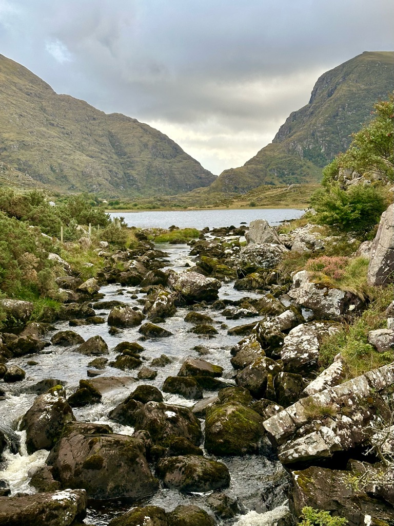 Made our way circuitously out of Cork, meandering for miles along the River Lee. Green farm fields and small herds of sheep or cows accent the landscape. Arrived in Kenmare in County Kerry ahead of the rain. Besides being a very quaint town it is also home to the largest stone circle in southwest Ireland (there are over 100). The circle dates to somewhere between 200-2,000 BC. We made the short hike to the Torc Waterfall where the surrounding woods appeared to be draped in thick green moss. Arrived in the rain at Killarney looking for better weather tomorrow.
