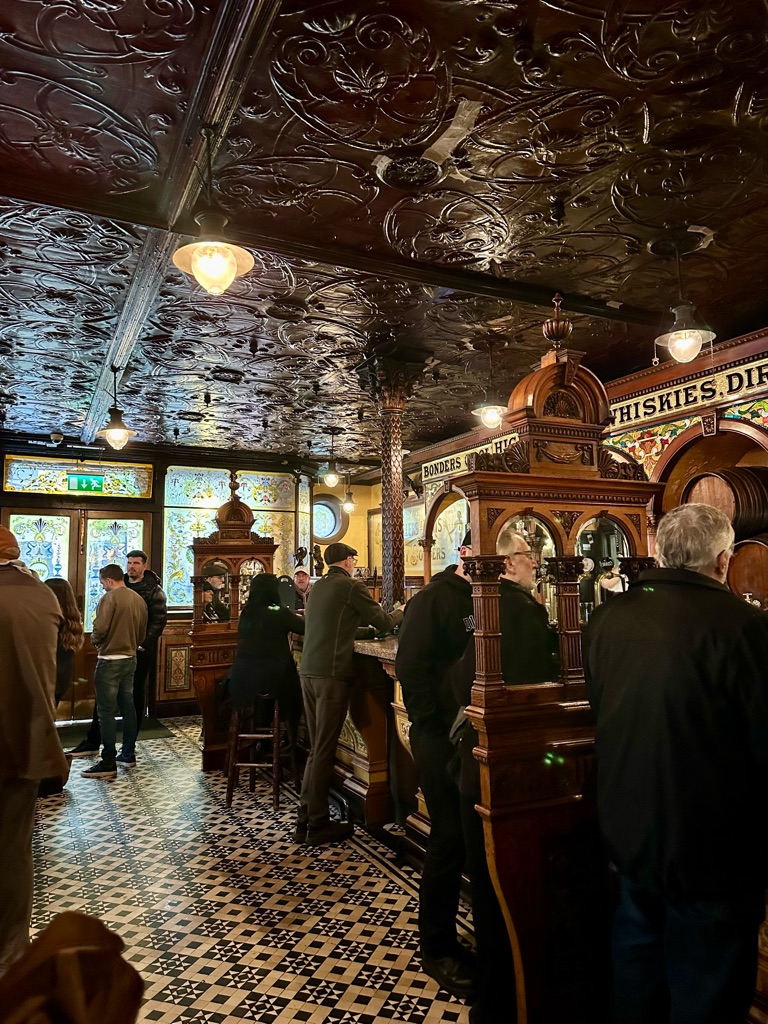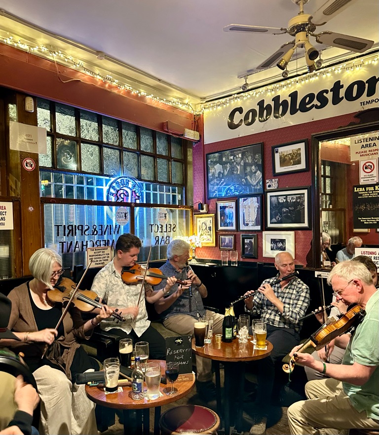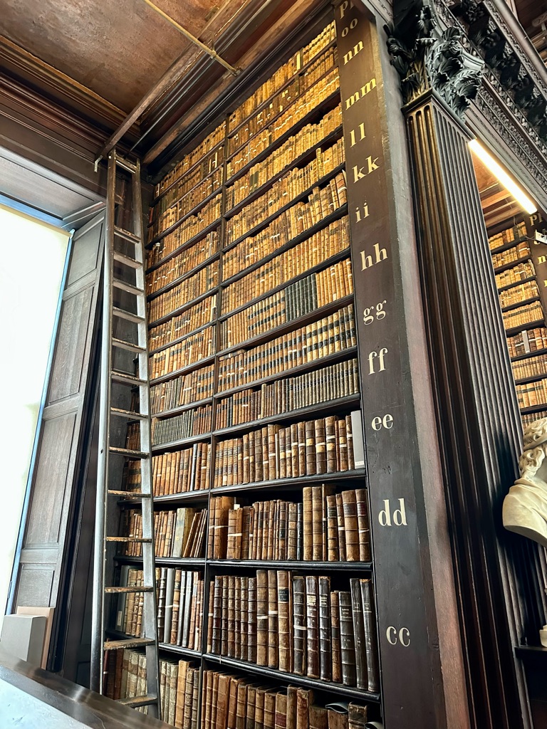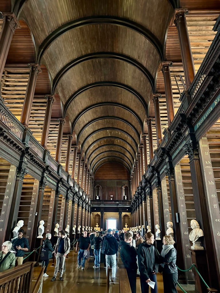 A party sunny day in Dublin at last. Visited the Long Hall library at Trinity College where they are in the process of restoring and preserving the 100,000+ volumes. Glimpsed the Book of Kells as well; a little peek into the Middle Ages. A tasty tour of Jameson followed by an evening at The Cobblestone with live Irish trad musicians and singers. Great way to complete our stay in Dublin.