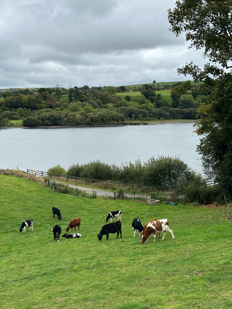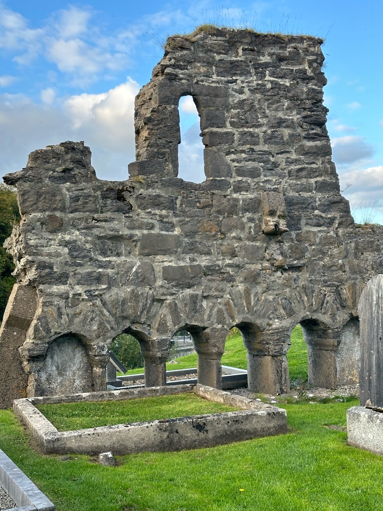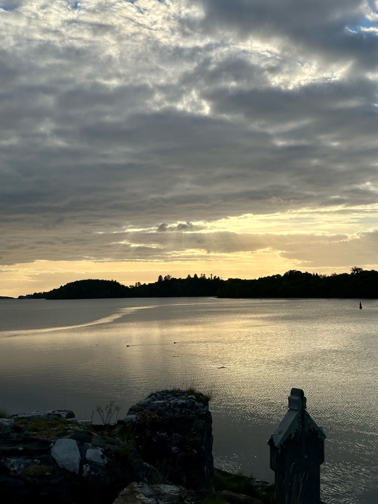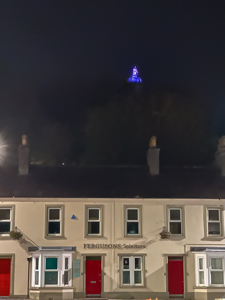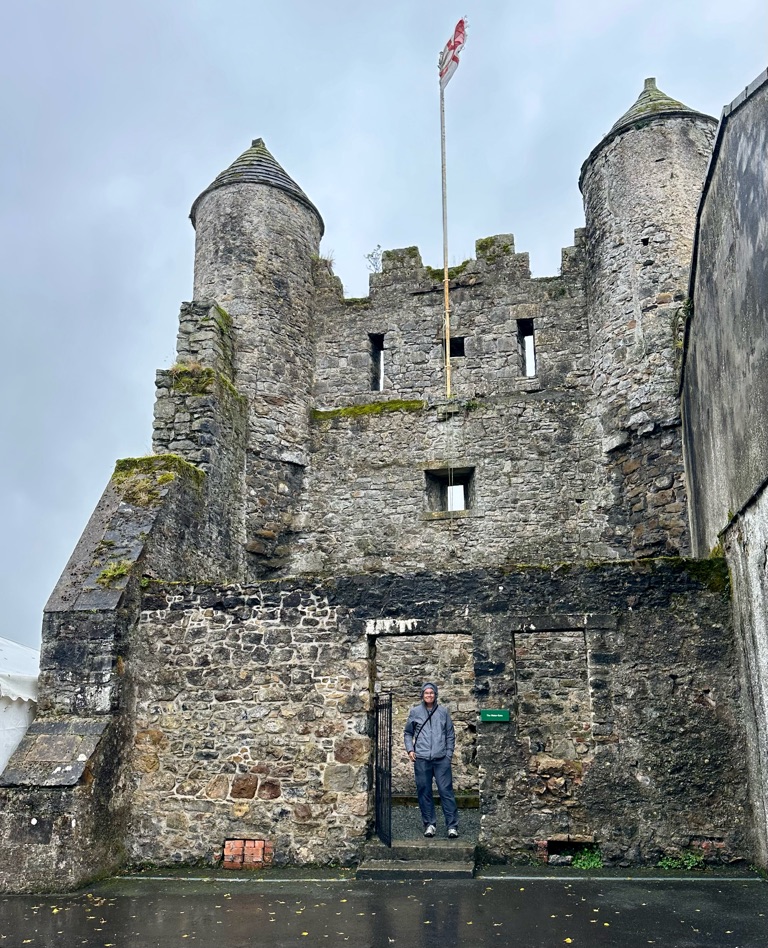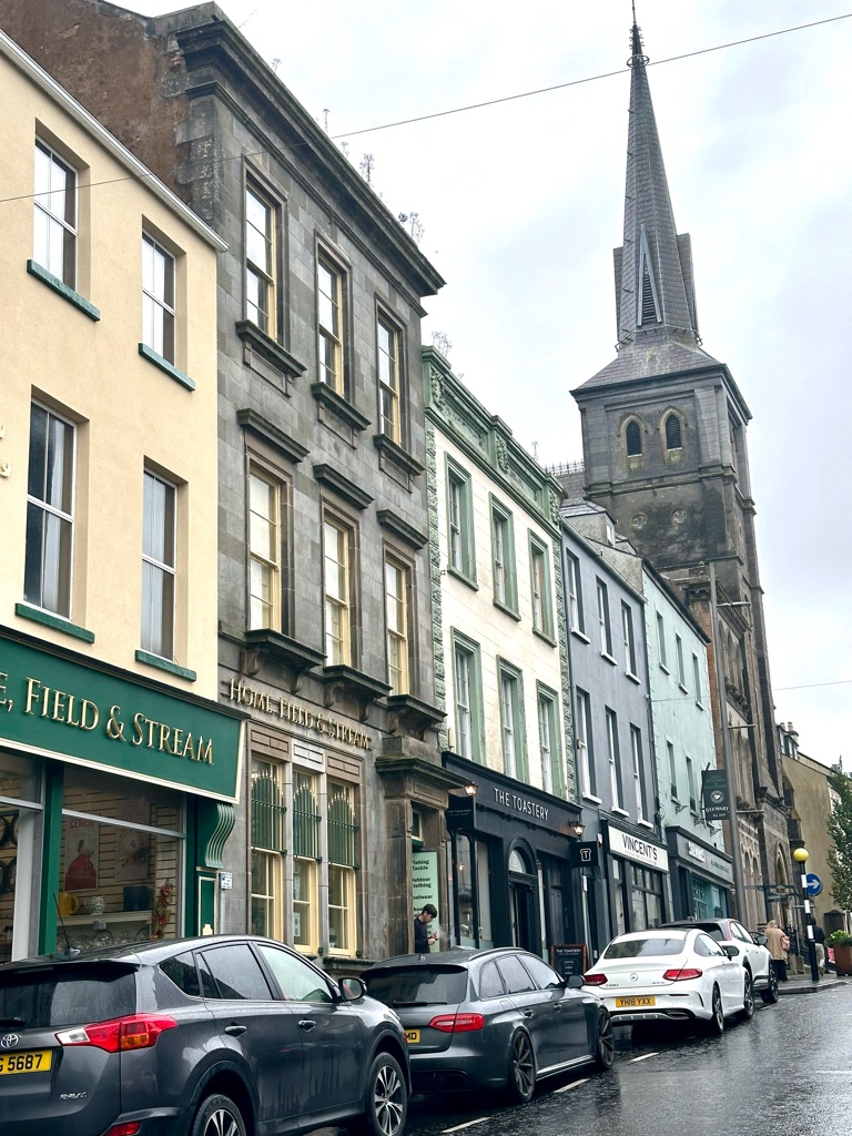 We crossed into Northern Ireland yesterday and arrived shortly in Enniskillen. Enniskillen is largely built on an island between two lakes or loughs with one main street through town. The street changes name 5 or 6 times along its length but has been home to the primary businesses, churches, government offices, and once residences for hundreds of years. Old pubs dating to the 1700s and 1800s are many. The statue of General Cole looms eerily over the city at night, its pillar unseen in the dark. Cute town once home to Paul’s grandfather and family.