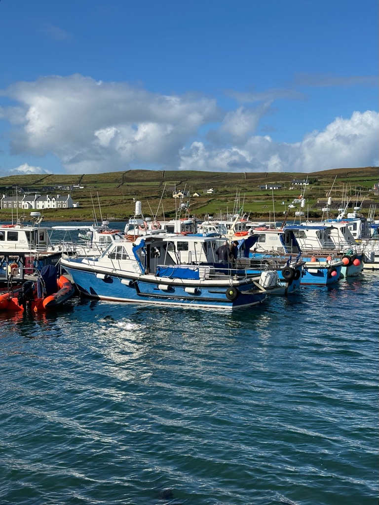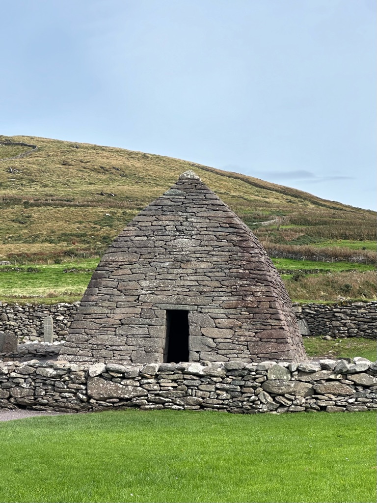 Dingle peninsula was worth the drive. The sun emerged as we found steep grassy hills dotted with sheep. The hills met the ocean in craggy cliffs with ancient stone structures interspersed among them. The quaint town of Dingle nestles in the heart of the peninsula. So much to like.