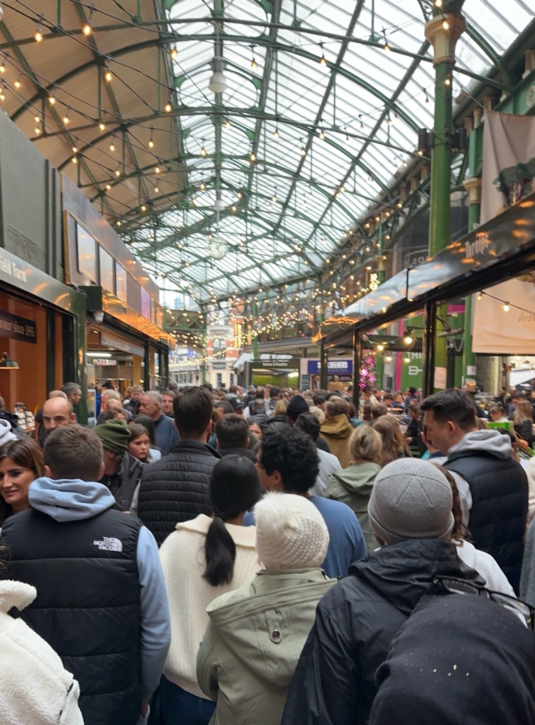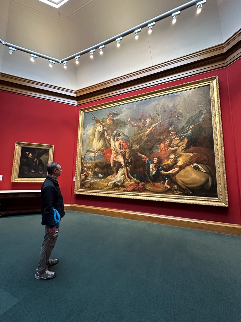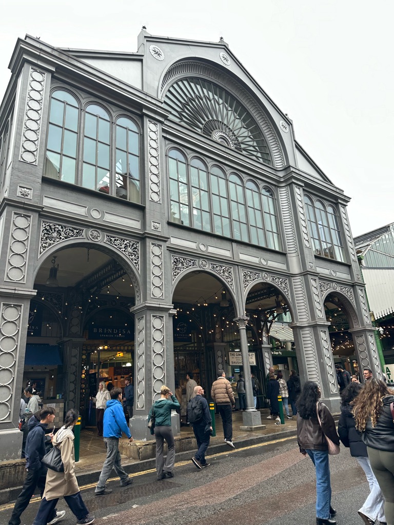 Last full day in London and a little drizzle didn’t slow us down. Took trains to Royal Albert Hall. A wonderful space with a cavernous main hall that seats over 5,200 people. The hall has hosted an amazing array of events including symphonies, major rock concerts, operas, tennis, boxing, ice skating shows, and more. Squeezed in a wonderful lunch in the crowded old Borough Market followed by some modern art at the Tate. Full day indeed.