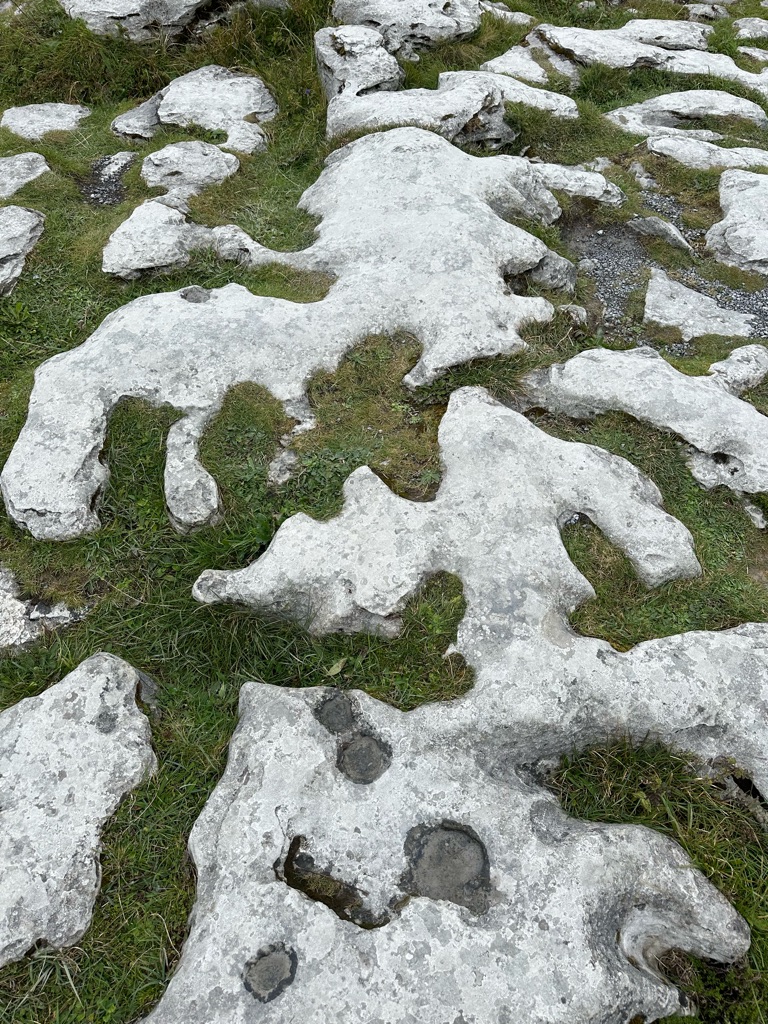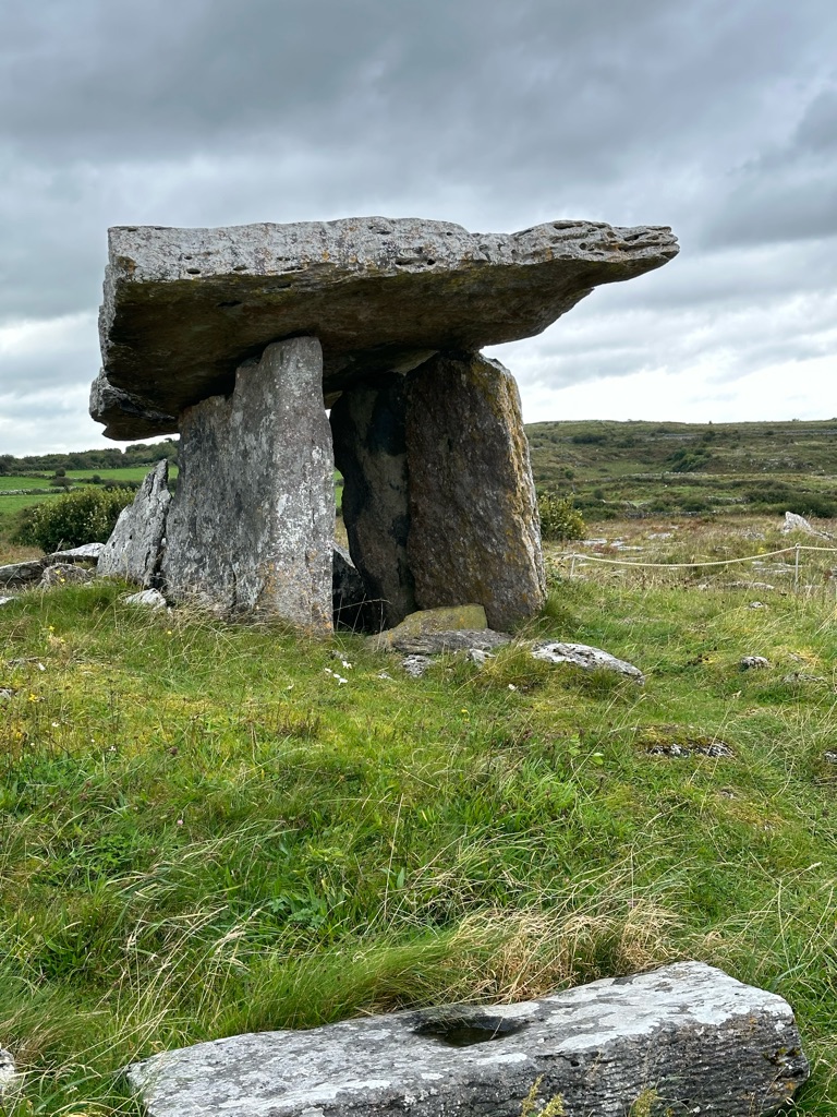 Rainy day heading to Galway. Had to make our way around Limerick, across the Shannon, and through The Burren. Stopped for lunch in Ennis to find they were having a craft fair with metal forgers working live over fire. The Burren was a strange landscape of eroded limestone and ancient structures. The stone dolman has bodies in it that date to 4200 BC. The sky finally cleared and we arrived in Galway.