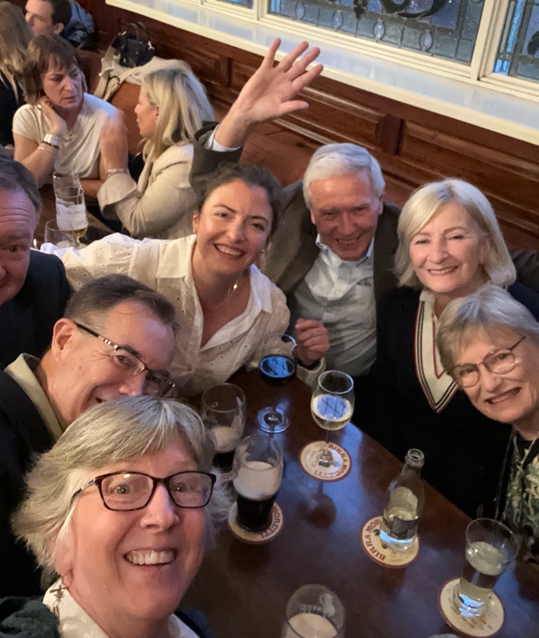 Arrived in Dublin to be greeted by Myles Duffy, Paul’s cousin. He took us on a meandering drive and ultimately to Dalkey, an area south of Dublin. In spite of blustery conditions and temperatures in the 50s, swimmers were taking a plunge in the Bay of Dublin. We capped the evening with a wonderful and raucous time of drinks and dinner with the Duffy clan.