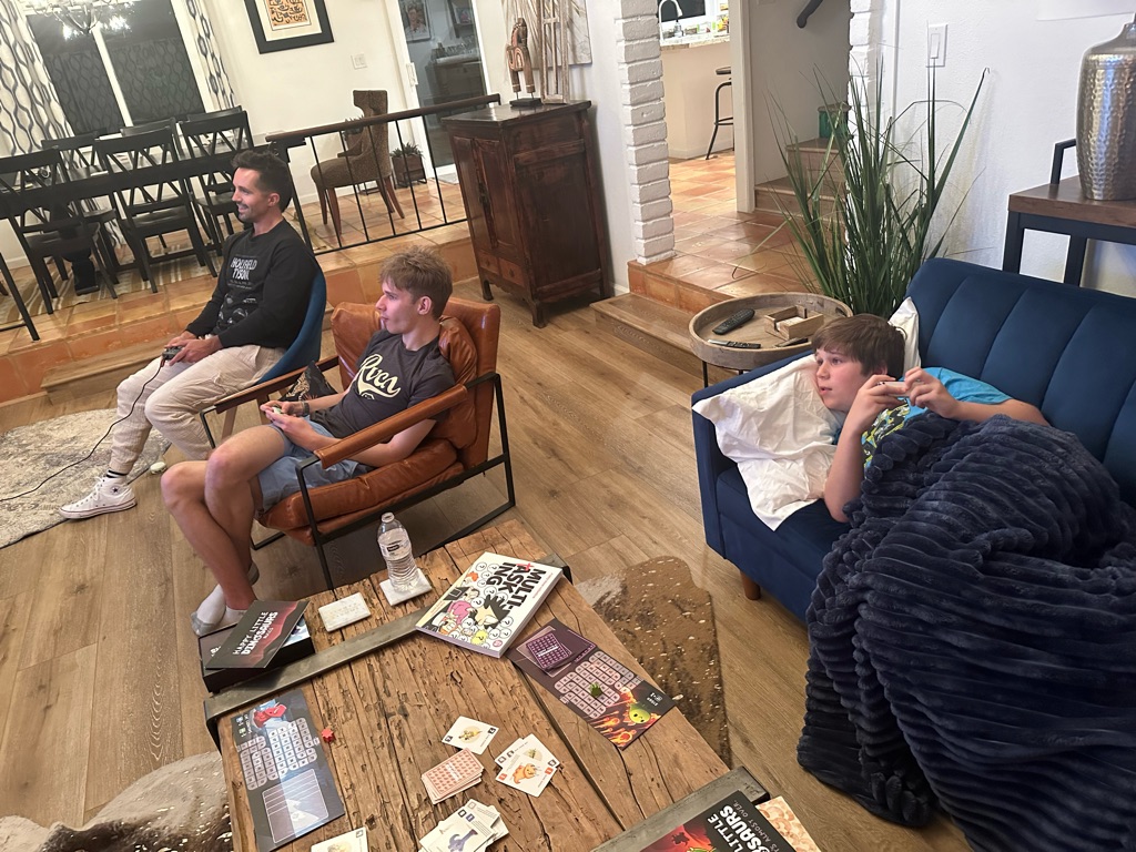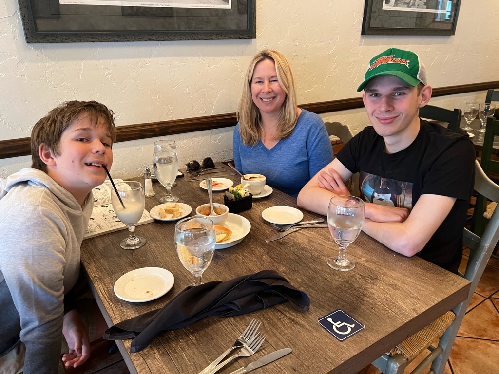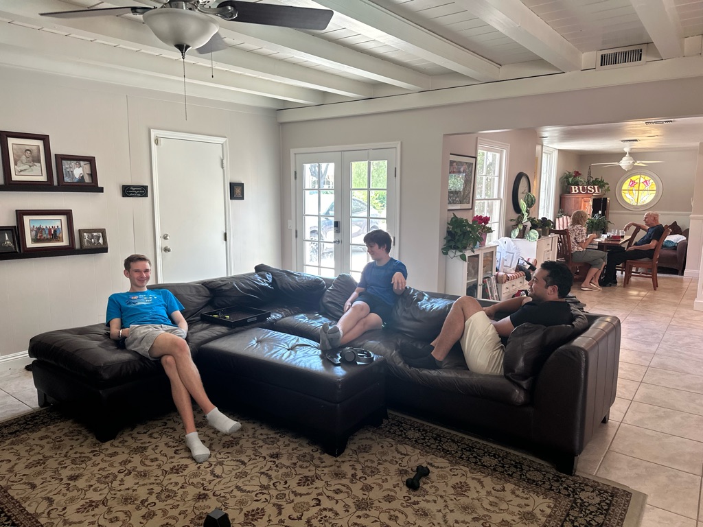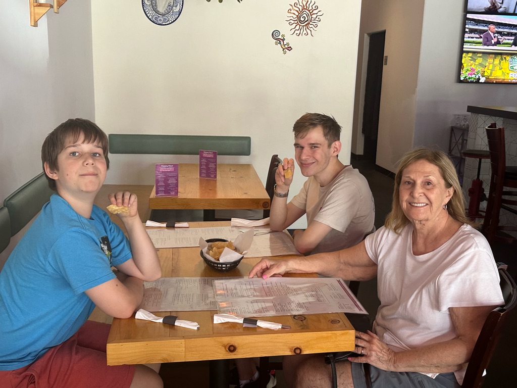 I had my leadership meeting, but I did it from the rental house. The boys kept themselves busy by reading and having screen time 😊 Rob and Debbie met at the airport and shared a rental car to drive up to the rental house. They arrived around 5:00 pm. We were so happy to see them!