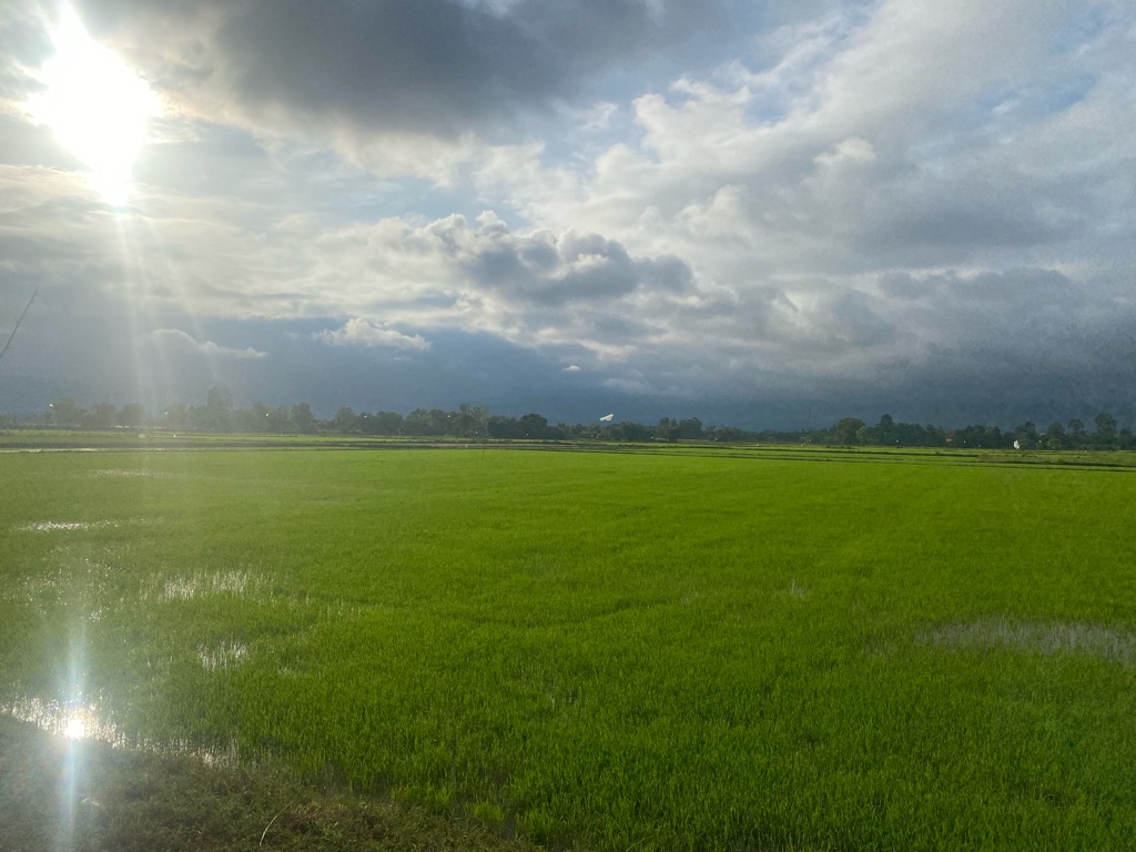 Reperages dans les rizières. Le vert du riz est parfois fluo, c’est magnifique !