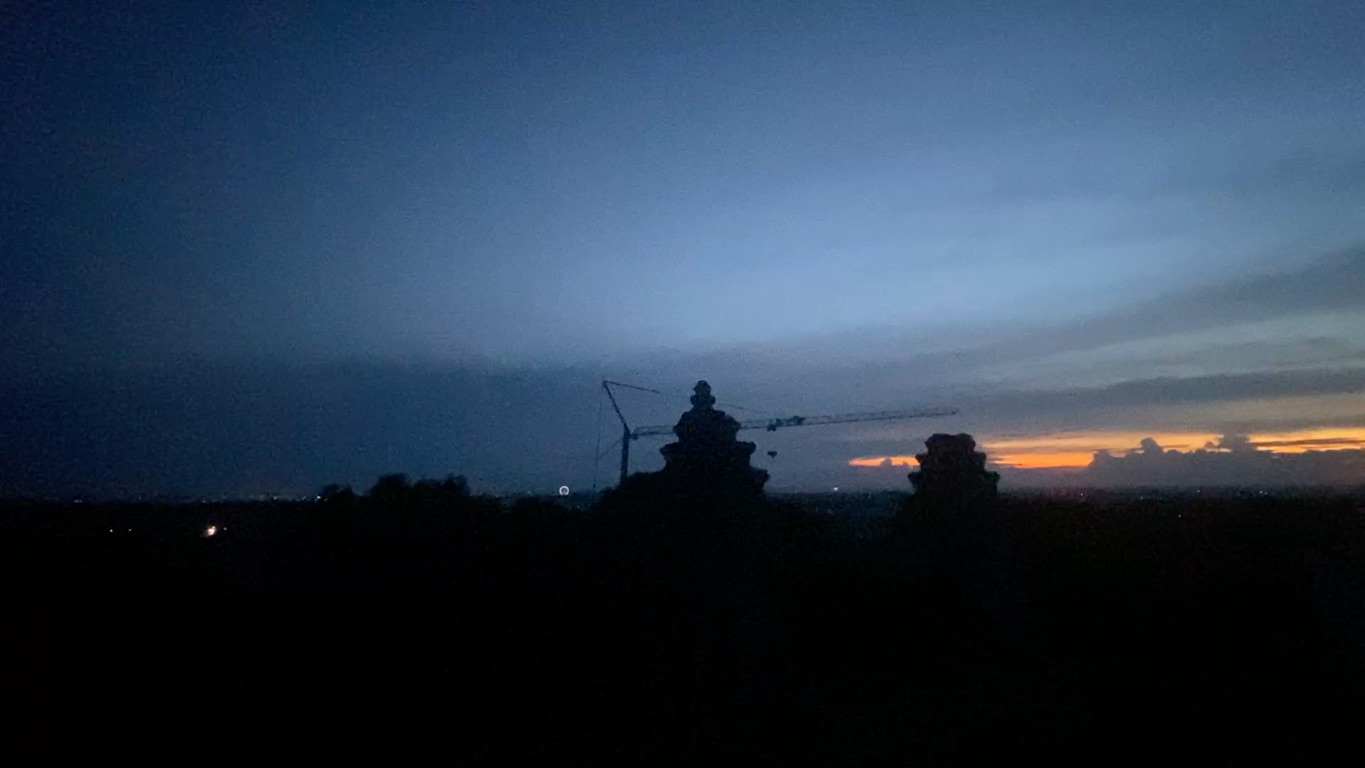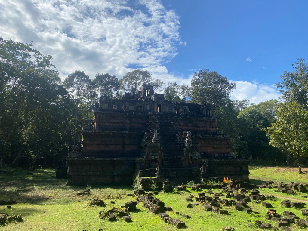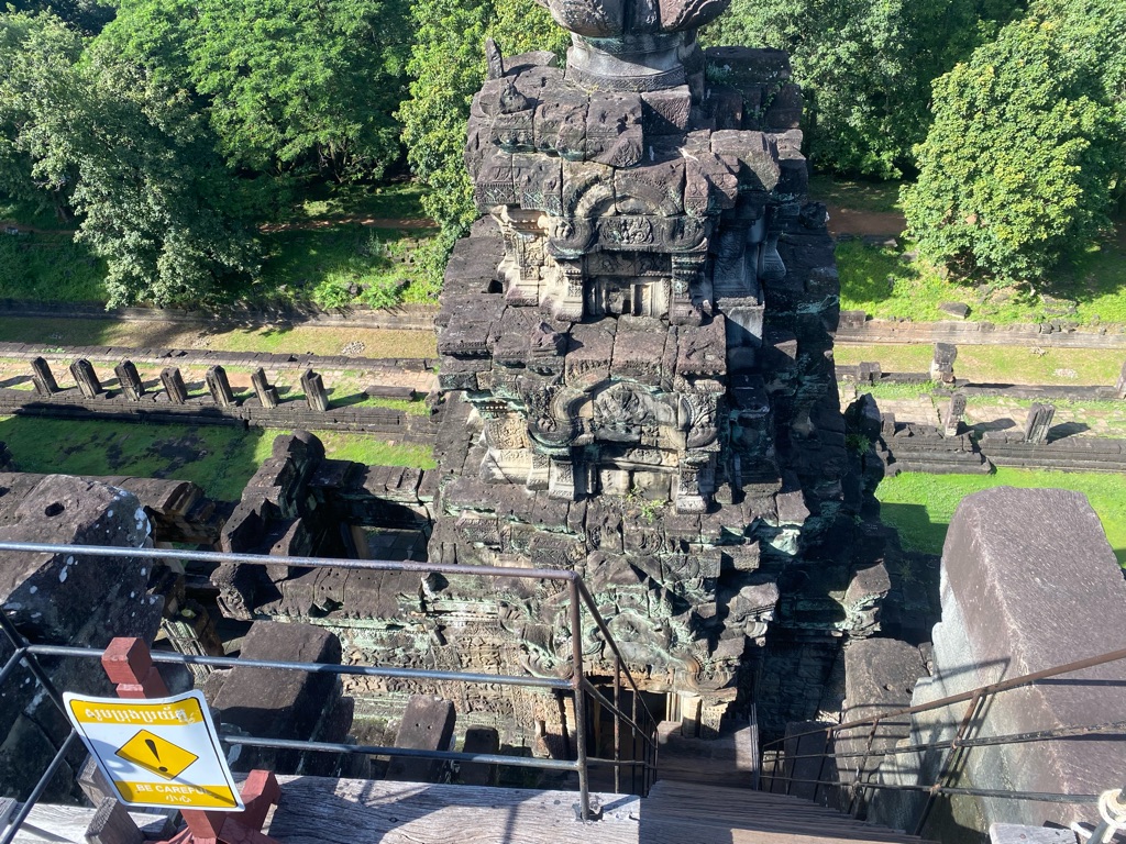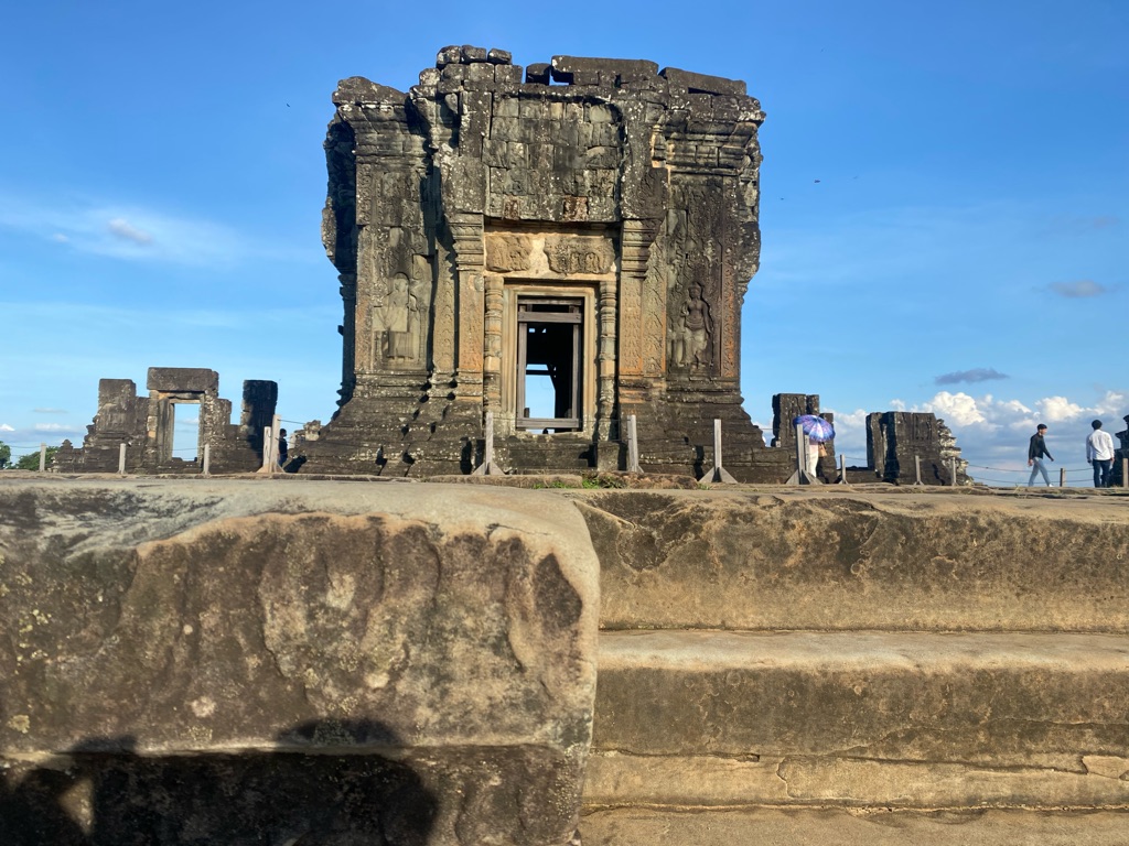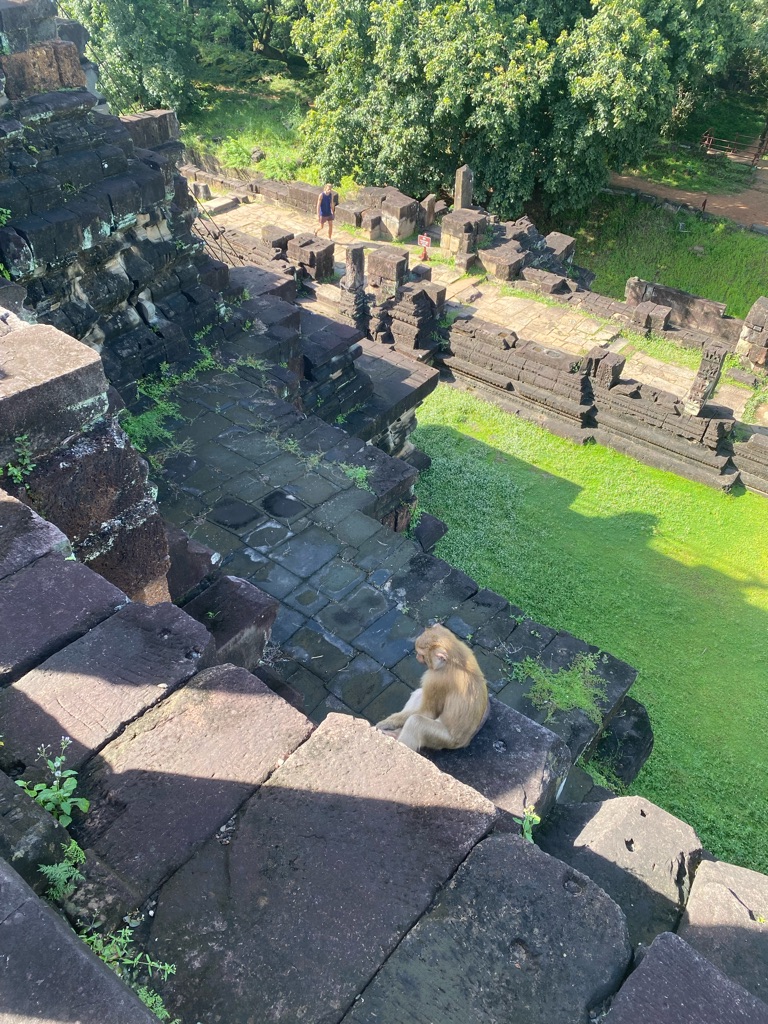 Le temple de Phnom Bakheng pour le coucher de soleil. Tout en haut d’une colline. On y voit Angkor Wat de haut mais de l’autre côté du sunset.