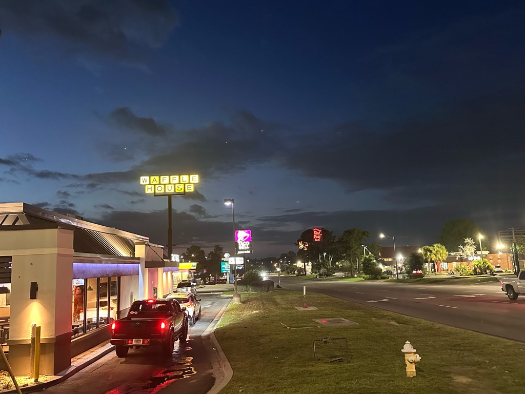 Wir waren hungrig und müde, sodass wir entschieden hatten, in unmittelbarer Motel-Nähe zu essen. Direkt neben dran war ein Waffle-House…
