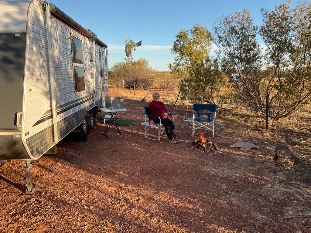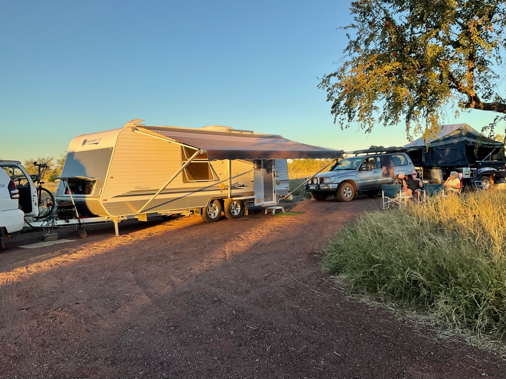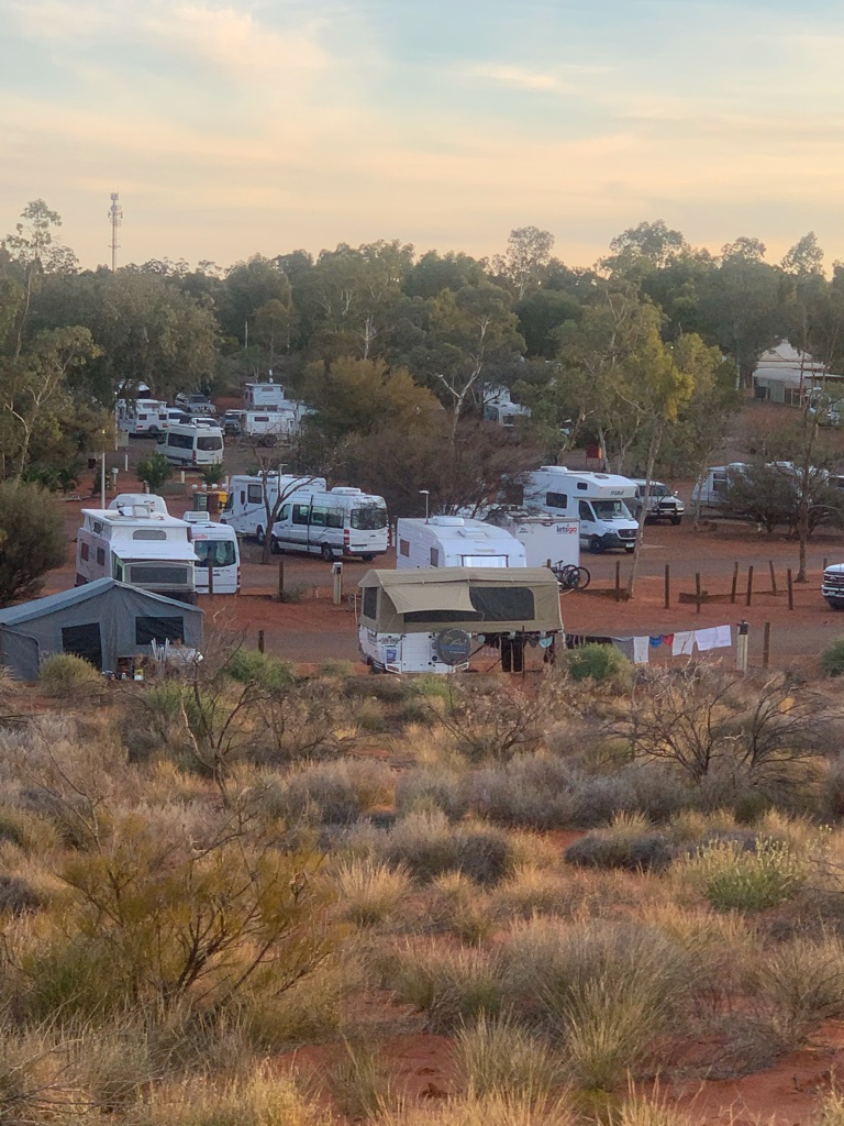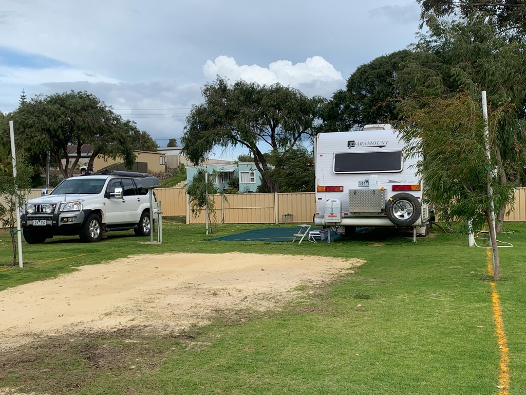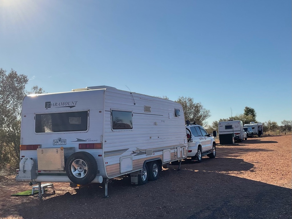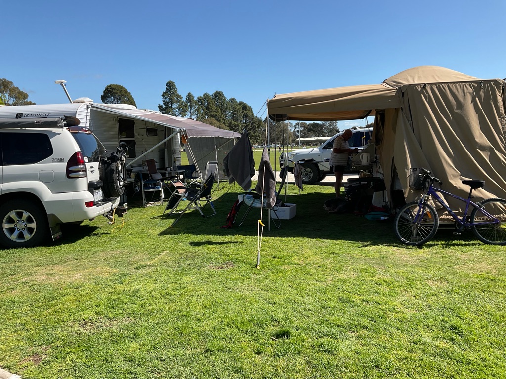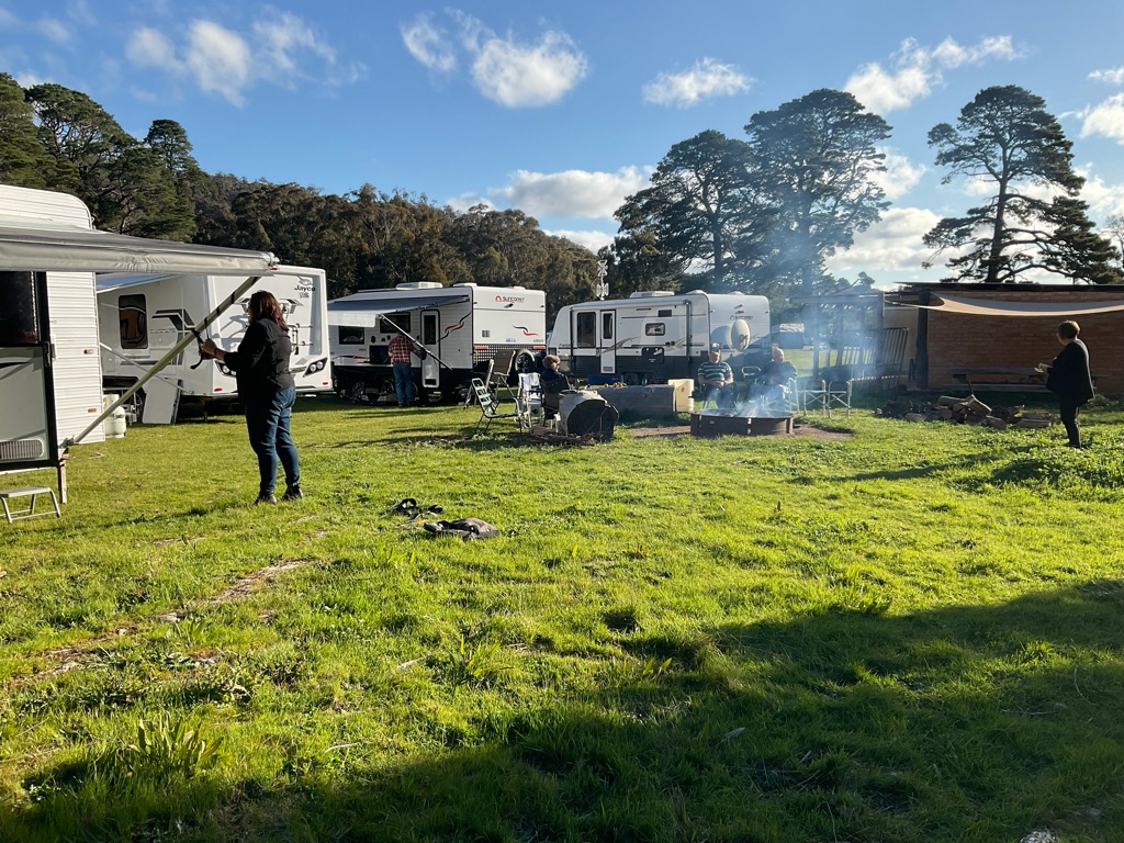 Camp site at Overland Corner. The pub is behind the van over the hill.