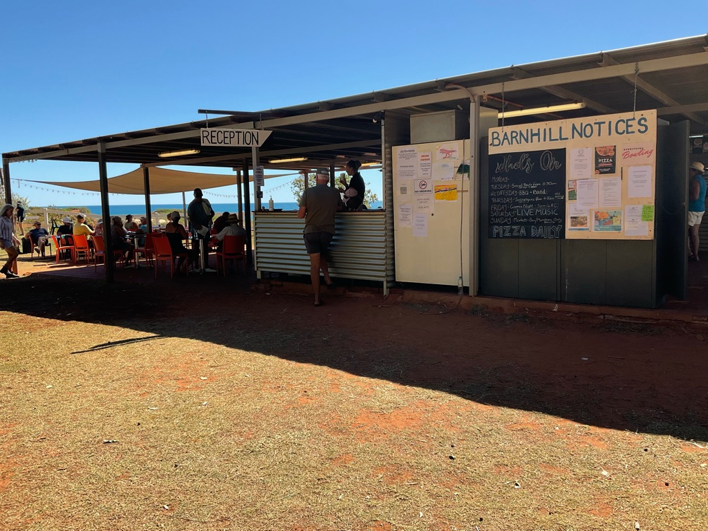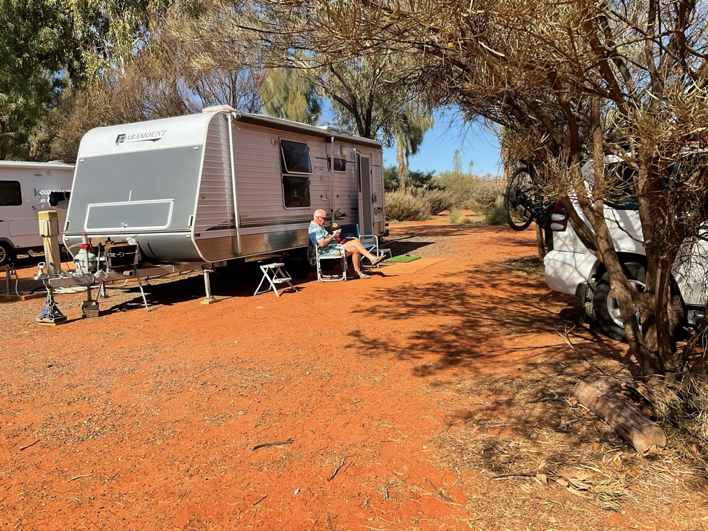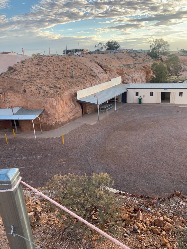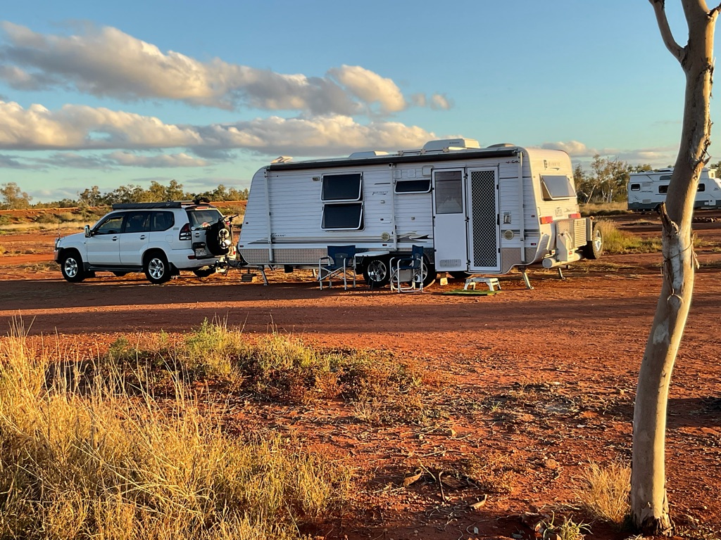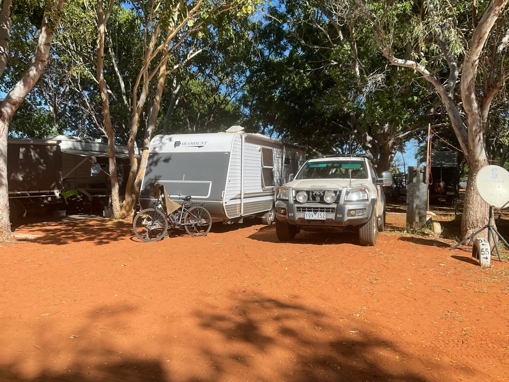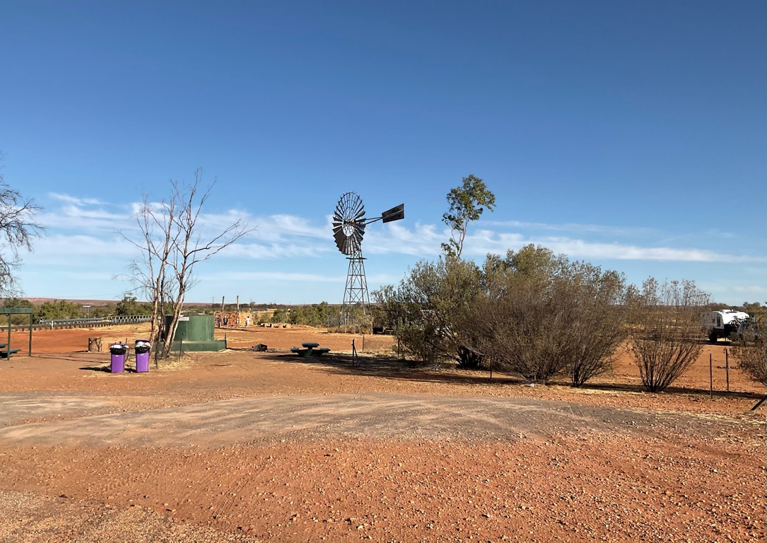 Camp site at Overland Corner. The pub is behind the van over the hill.
