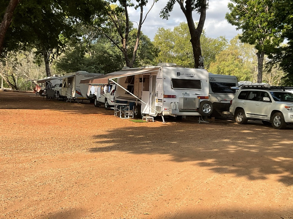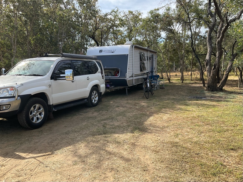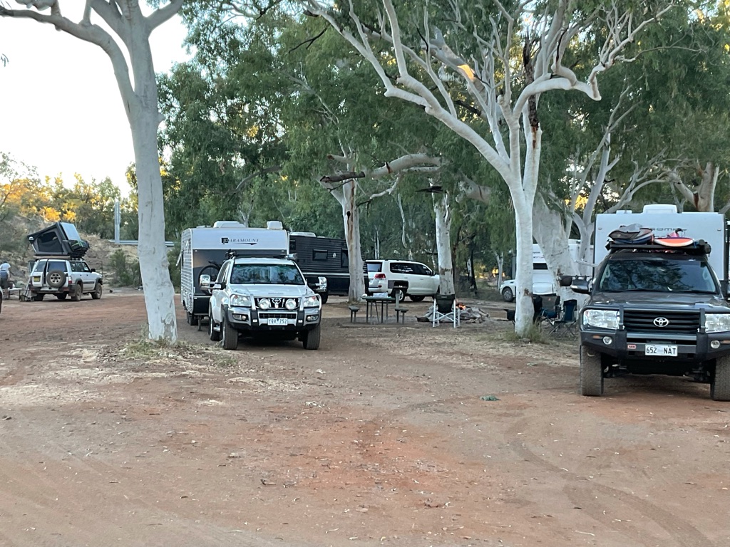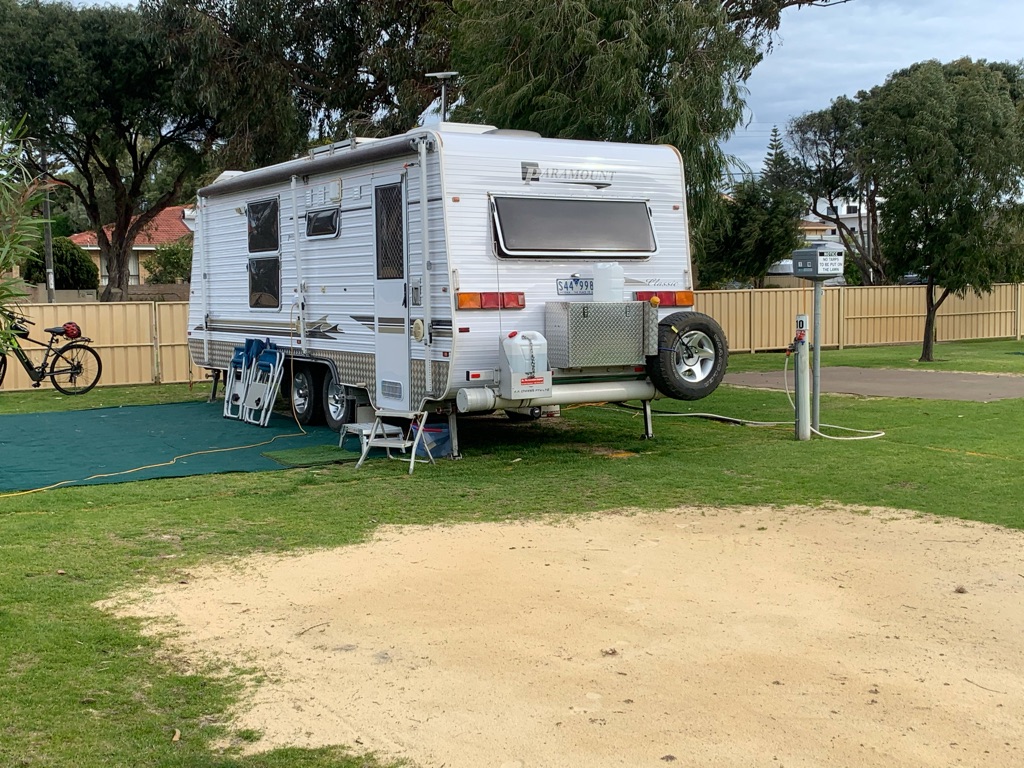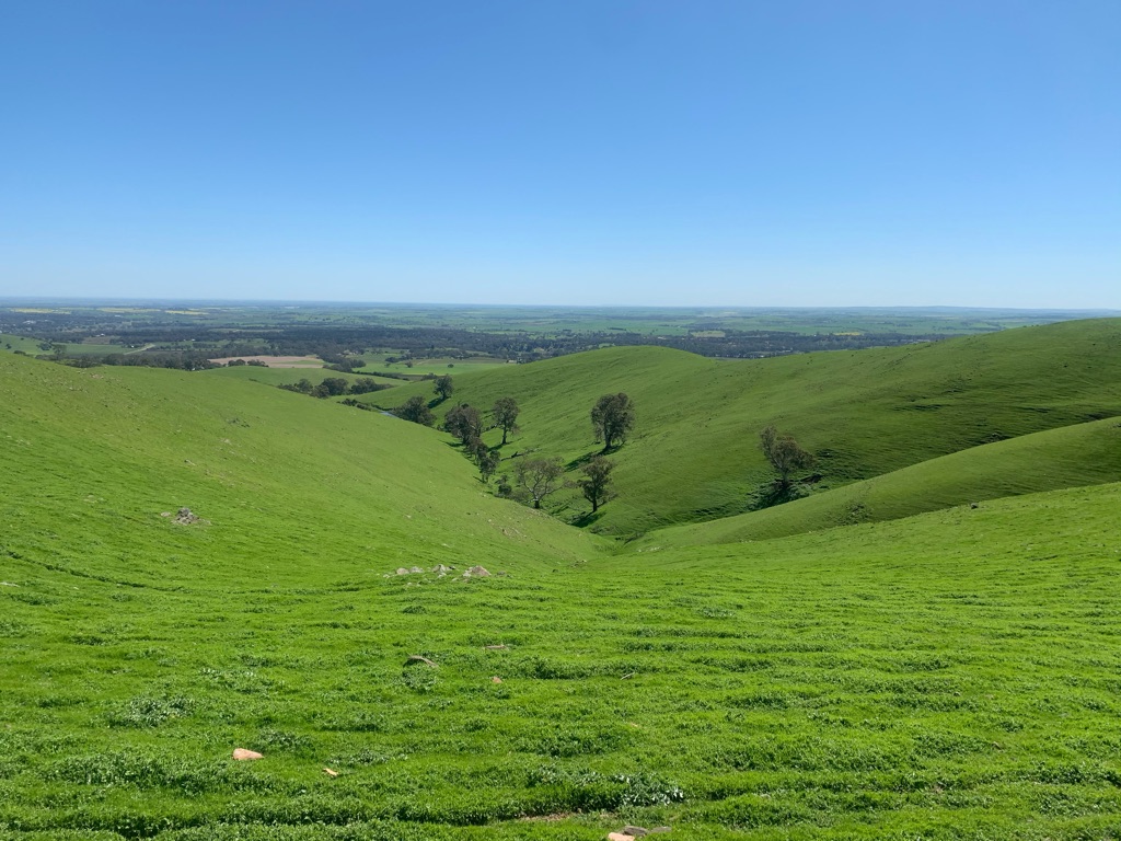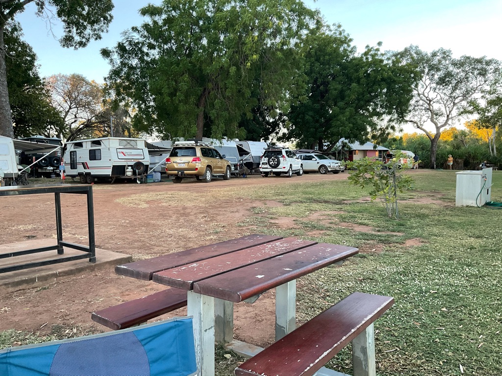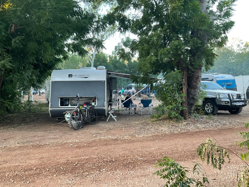 Camp site at Overland Corner. The pub is behind the van over the hill.