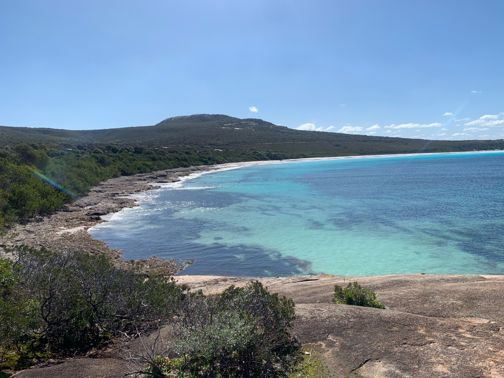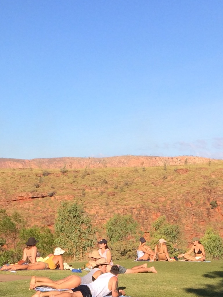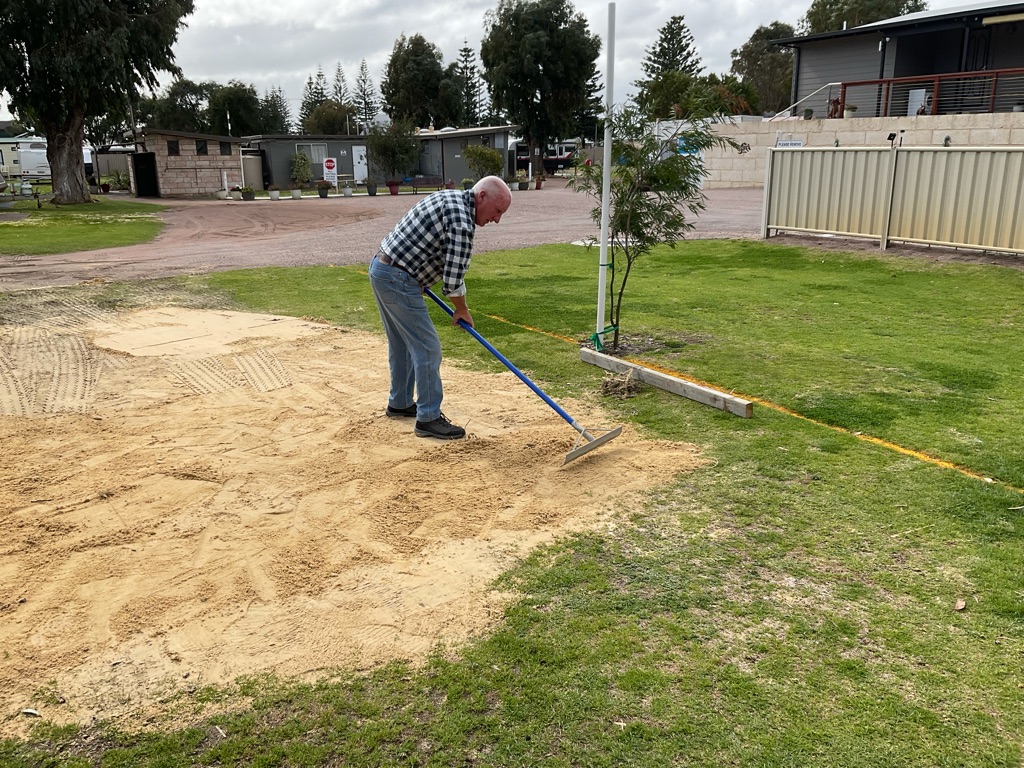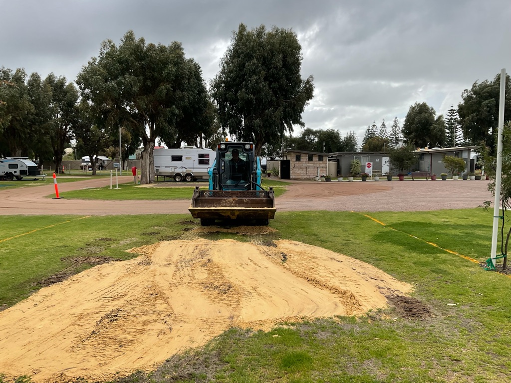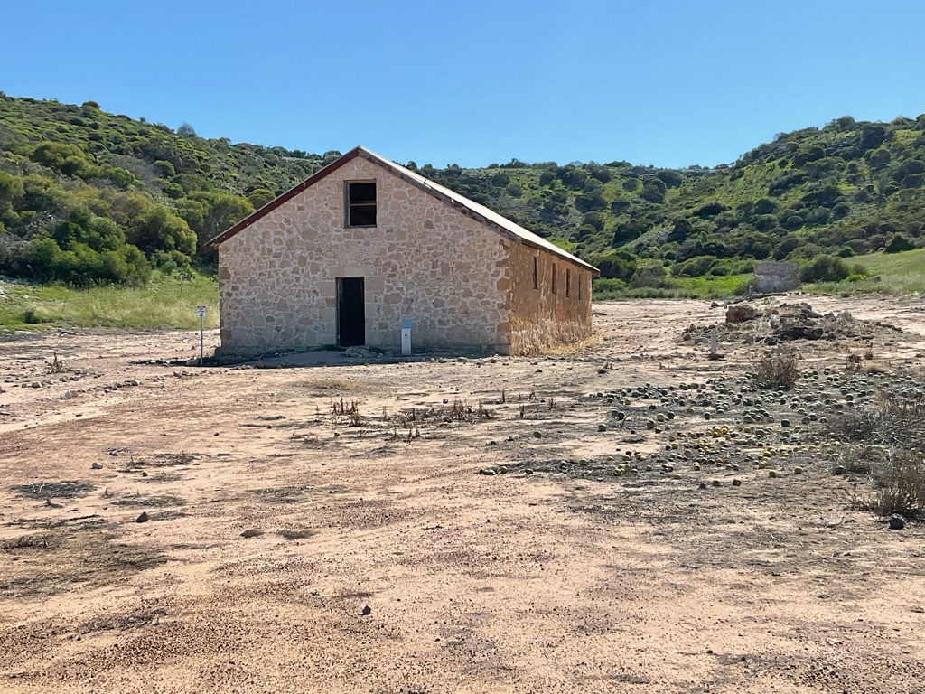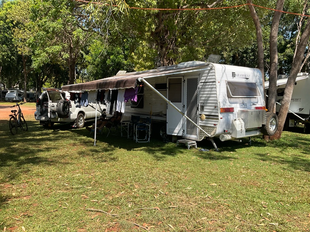 Camp site at Overland Corner. The pub is behind the van over the hill.