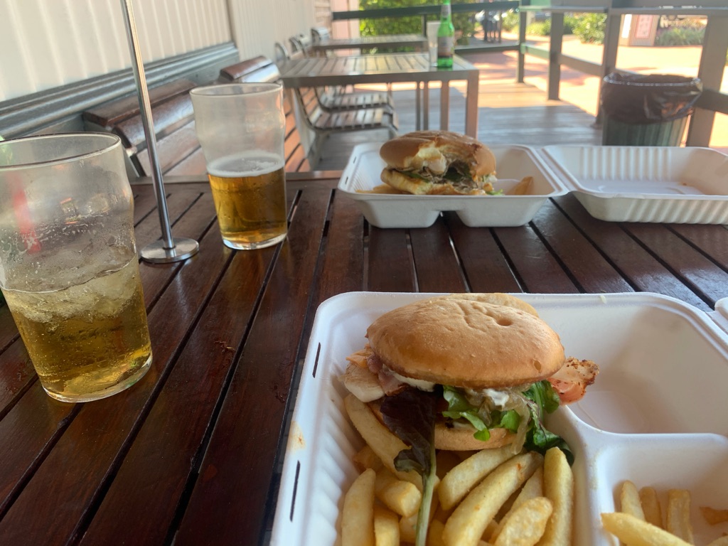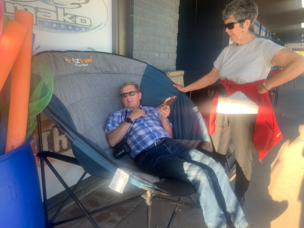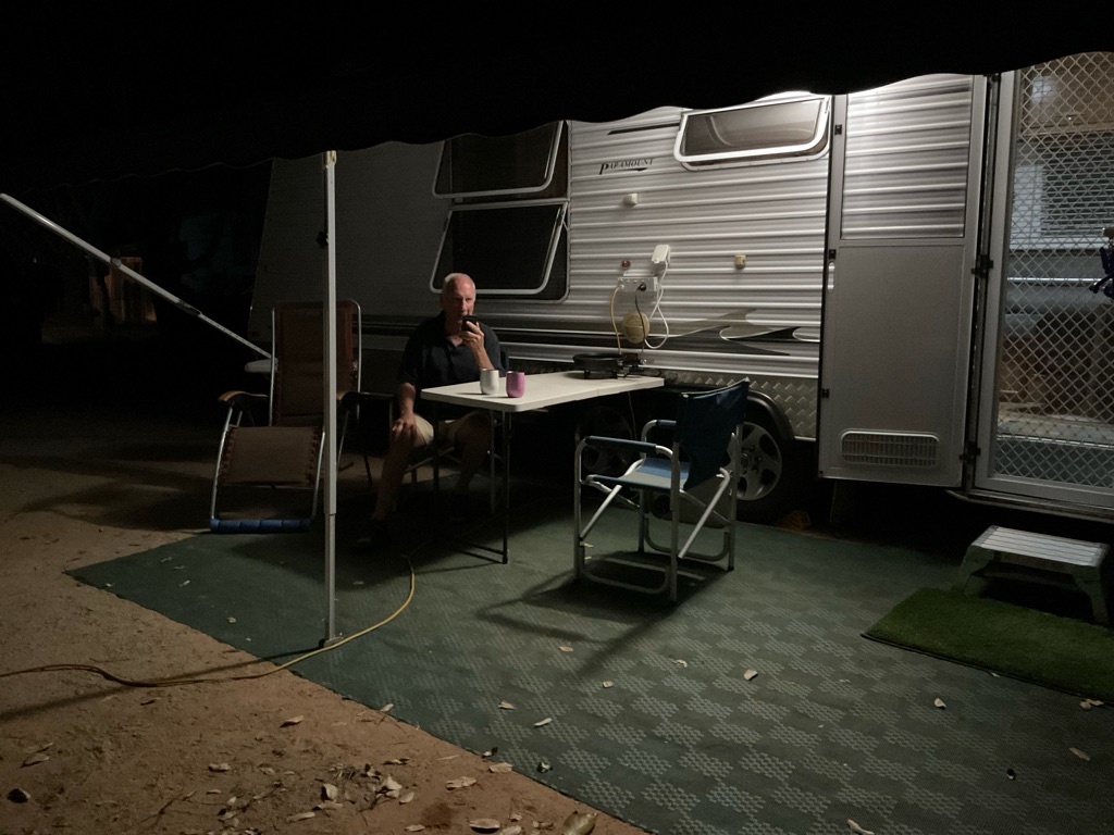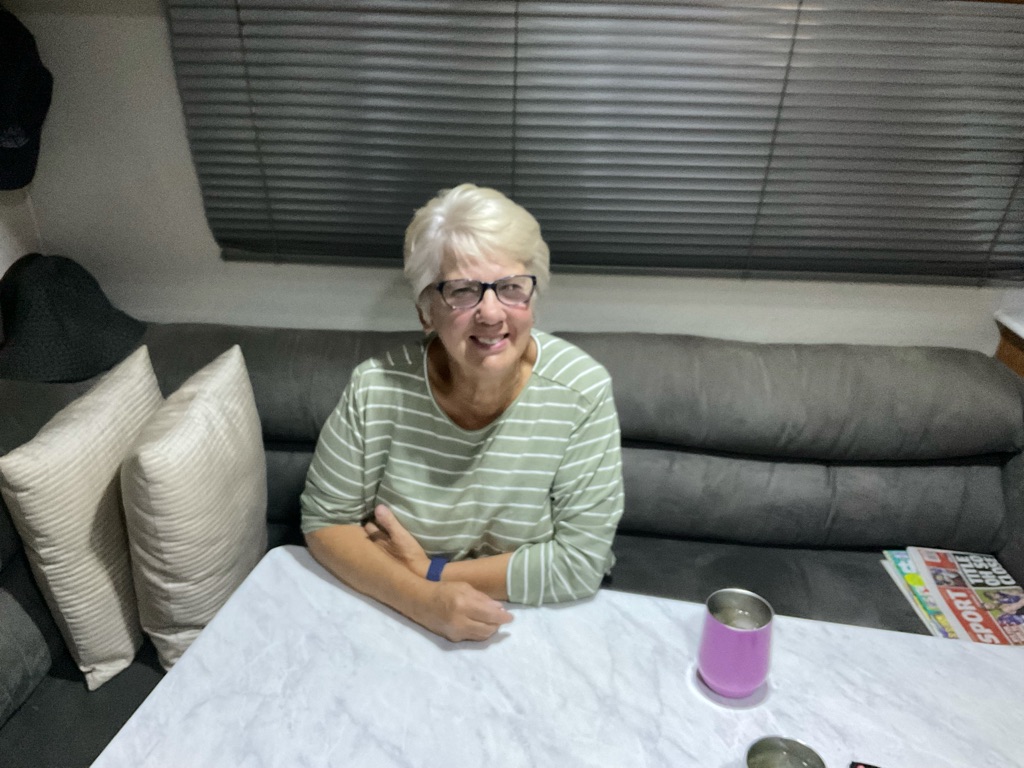 When we met up with them Bev handed Brian a little goodie bag for his birthday. We had a lovely night with them but they head home to Adelaide tomorrow so we won’t see them again.
