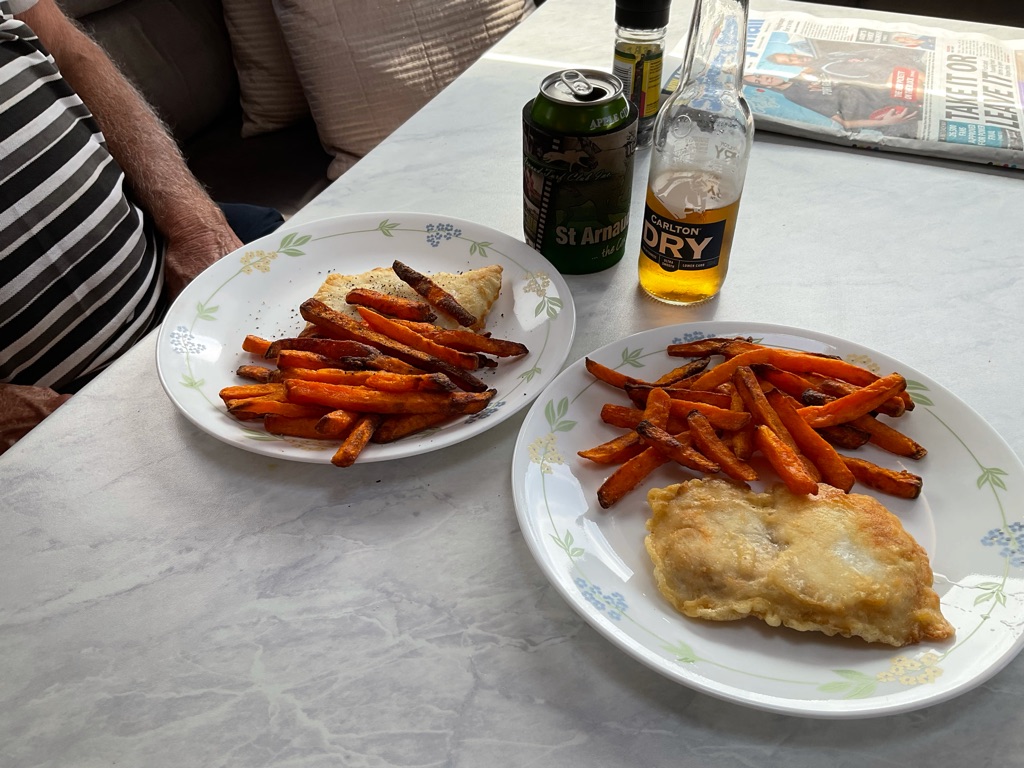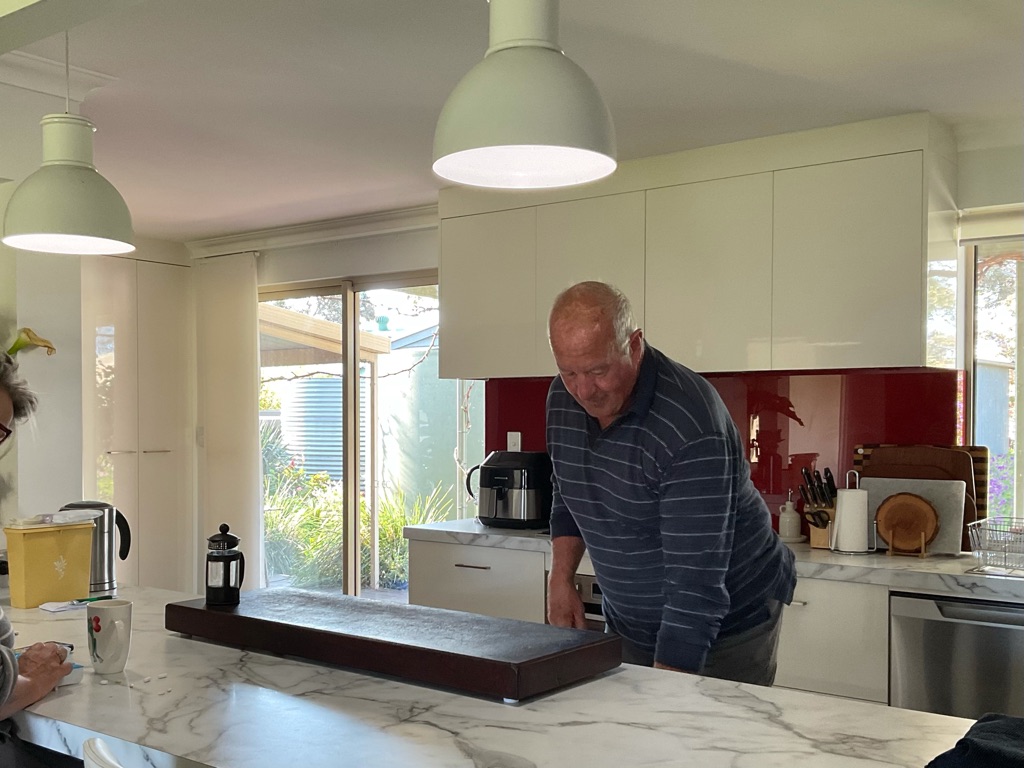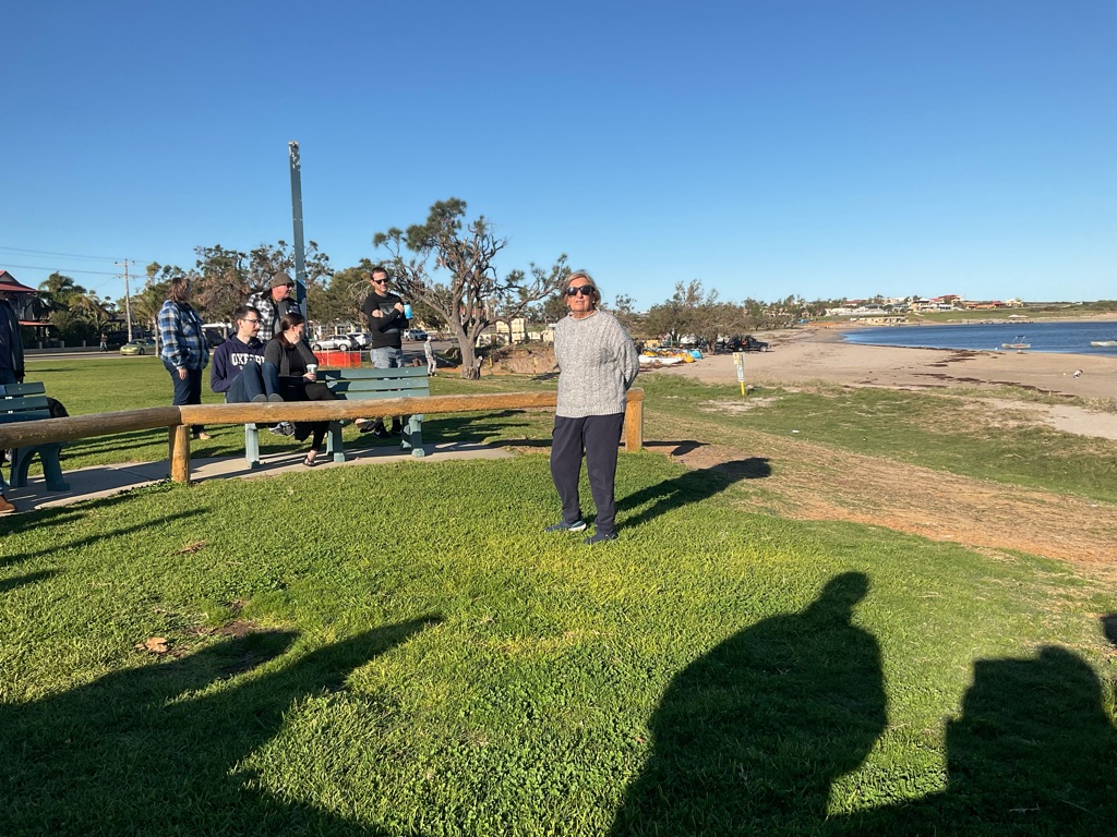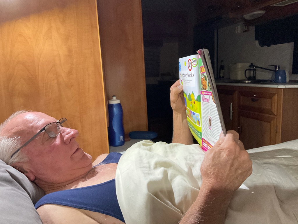 When we met up with them Bev handed Brian a little goodie bag for his birthday. We had a lovely night with them but they head home to Adelaide tomorrow so we won’t see them again.
