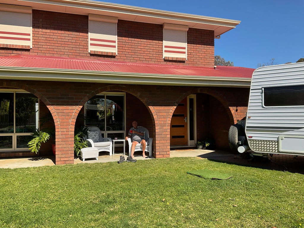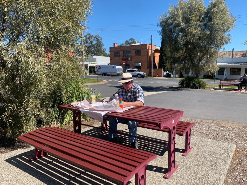 Headed towards Loxton where the bakery does g/f pies. (Which are pretty good). Had an early lunch then headed toward Overland Corner where we were planning to stay the night. Even though we used google maps we managed to get ourselves a little lost on a couple of occasions - Loxton does not have great road signage we discovered.