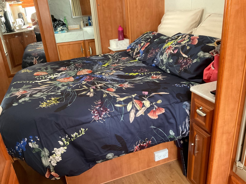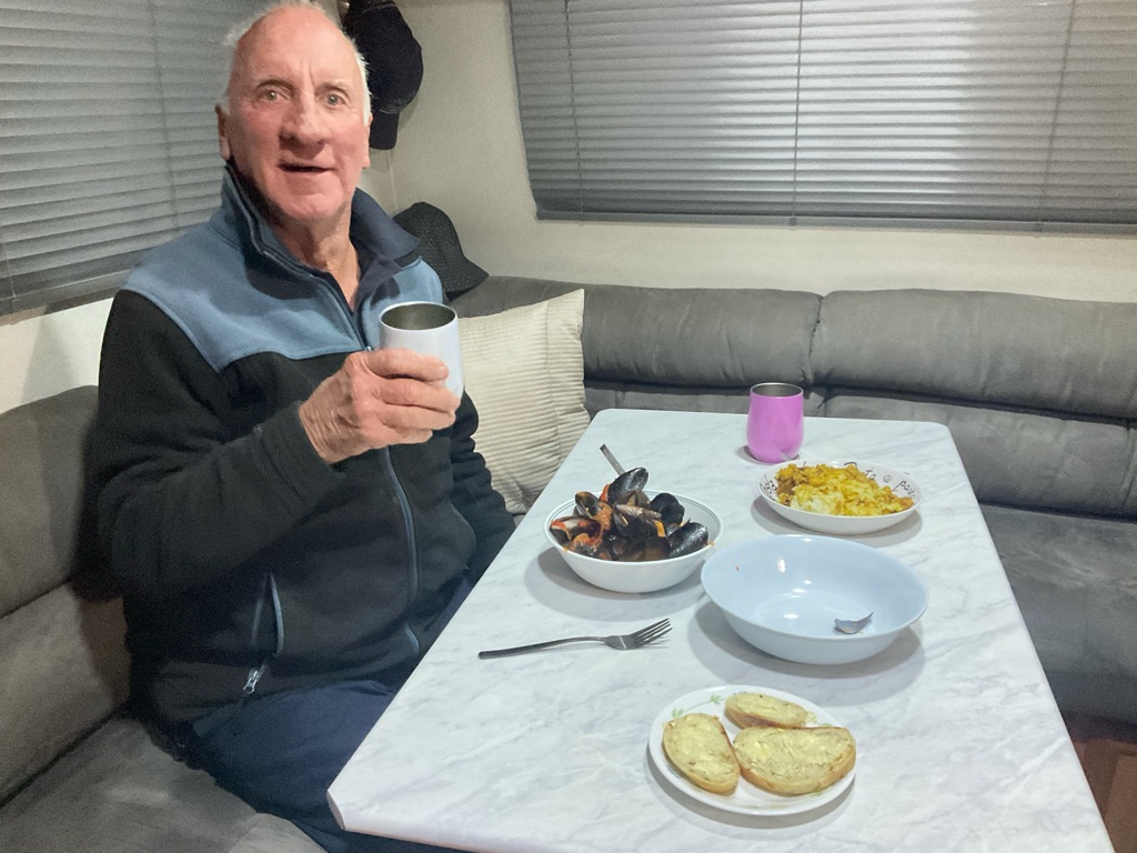 Got very cold so put on the diesel heater which was lovely & toasty. Decided to turn it off when we were ready to go to sleep - big mistake as when we tried to put it on at 3 am it wouldn’t go. Tried to get Brian out of bed to give the pump a tap but surprise, surprise, he wouldn’t do it. So therefore we froze for the rest of the night. Then we discovered the gas bottle we thought was half full was in fact empty, thankfully the other bottle was full. So a quick changeover was needed there. Next, the lights suddenly went out (12 volt); we thought - is someone telling us to go home.