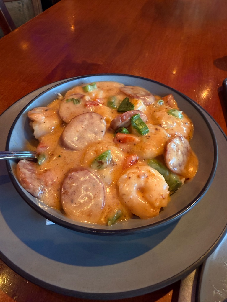 Wonderful and smooth, cheese and grits make the shrimp and sausage more delicious and fresh, five star!