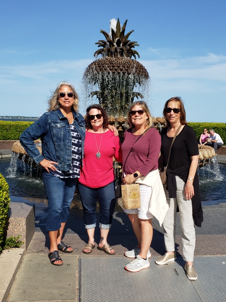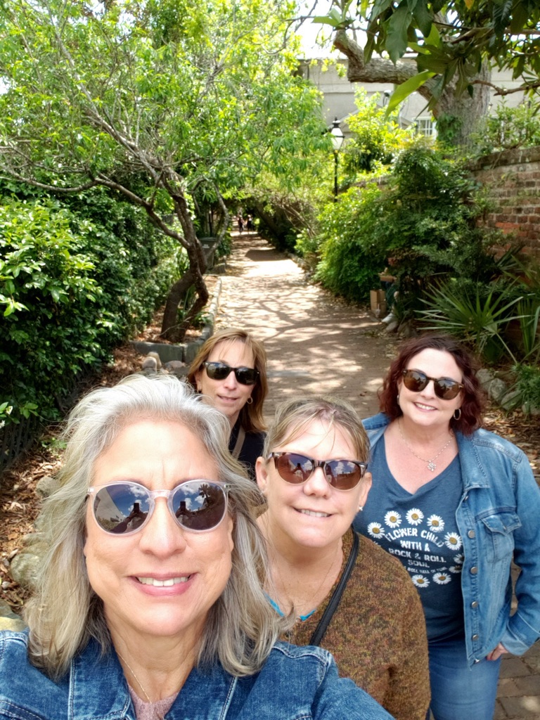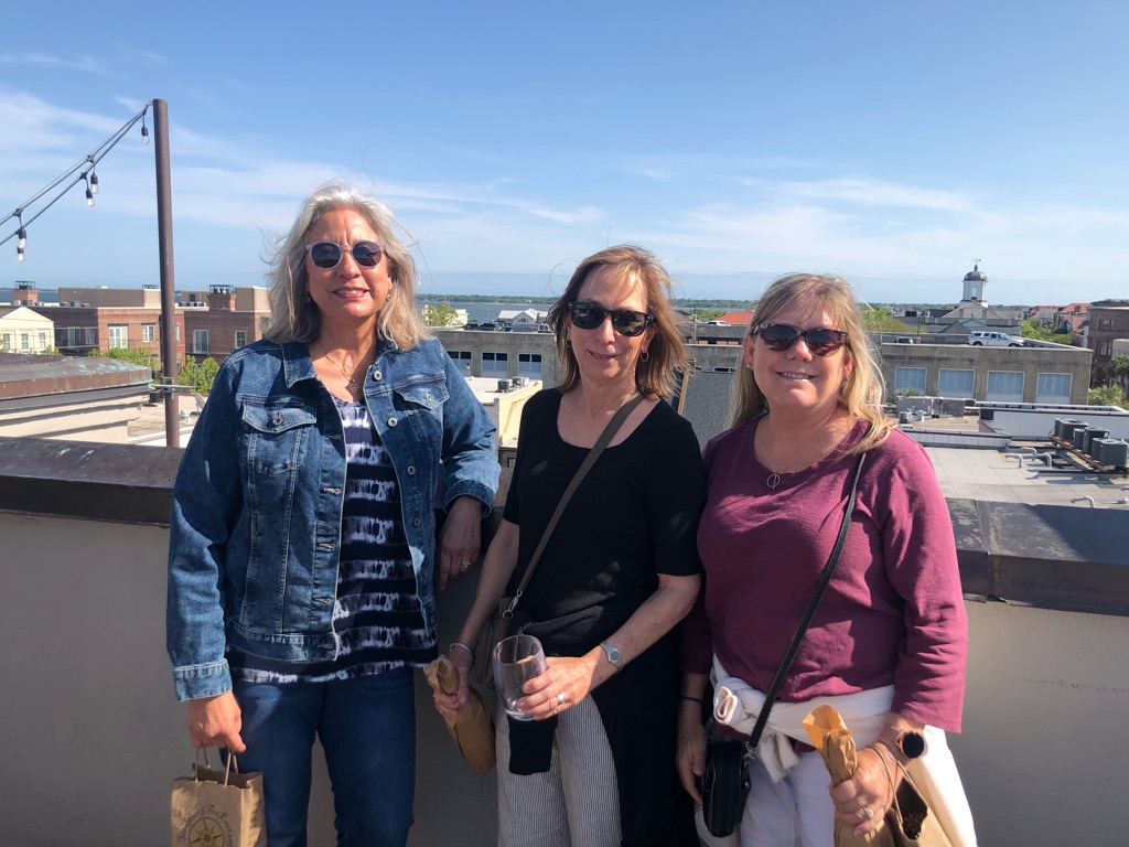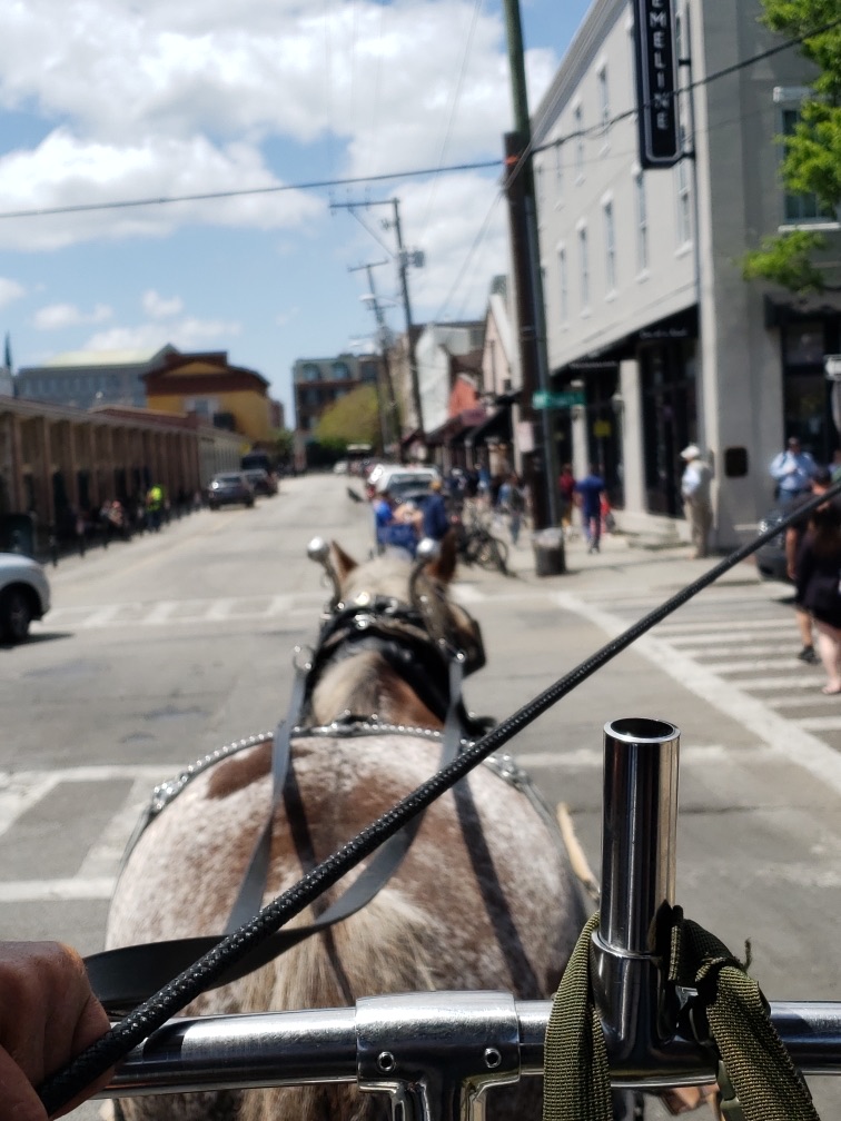 After all that time sitting, we decided to walk to the downtown French and historical market area and had a light dinner at Meeting at Market.Tulips hanging from the roof - interesting.